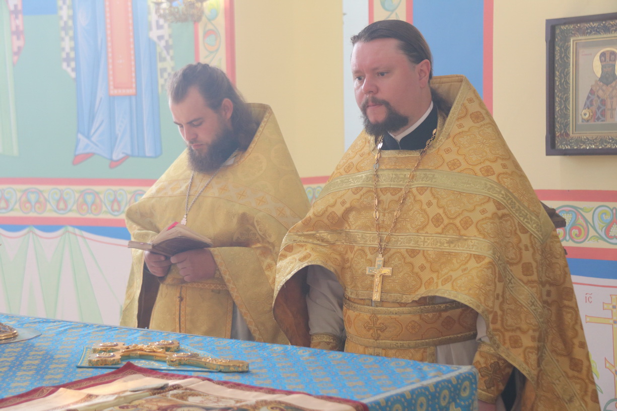 Его Преосвященству сослужили:иерей Виталий Шаркеев; иерей Андрей Попов; иерей Иоанн Гречишников и Илия Гречишников; диакон Василий Талько, клирик Пеображенского Кафедарльного собора г. Владивостока.