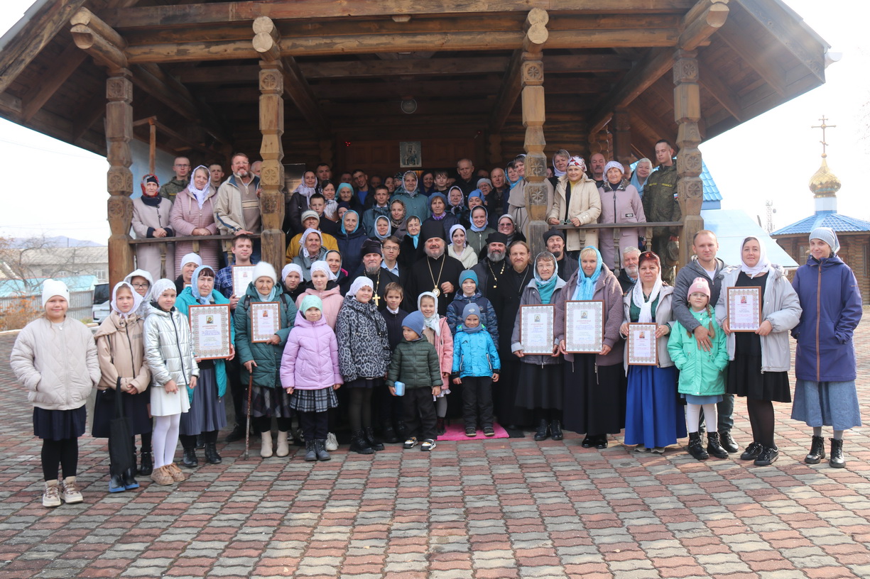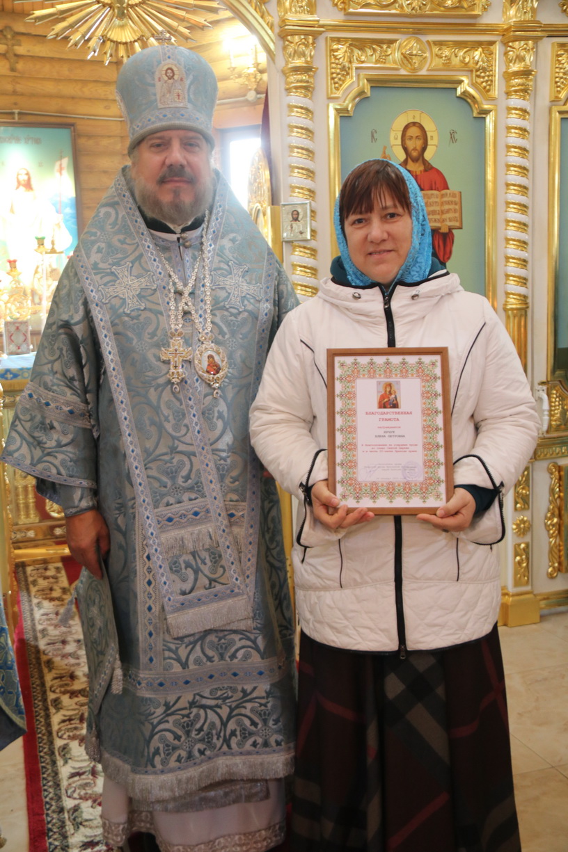 В благословение за усердные труды, и к 20-ти летию образованию прихода Иверской иконы Божией Матери, Владыка вручил Архиерейские и Благодарственные грамоты прихожанам и сотрудникам, которые многие годы трудились и участвовали в благоустройстве и становлении Свято-Иверского храма пгт. Смоляниново.Также всех присутствуюших, стихами и песнями, с престольным праздником храма подравили воспитанники Вокресной школы.