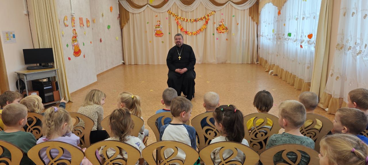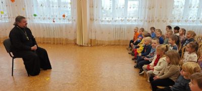 Руководителя миссионерского отдела Находкинской епархии иерея Виталия Шаркеева пригласили побеседовать с воспитанниками детского сада No 20 г. Находки.