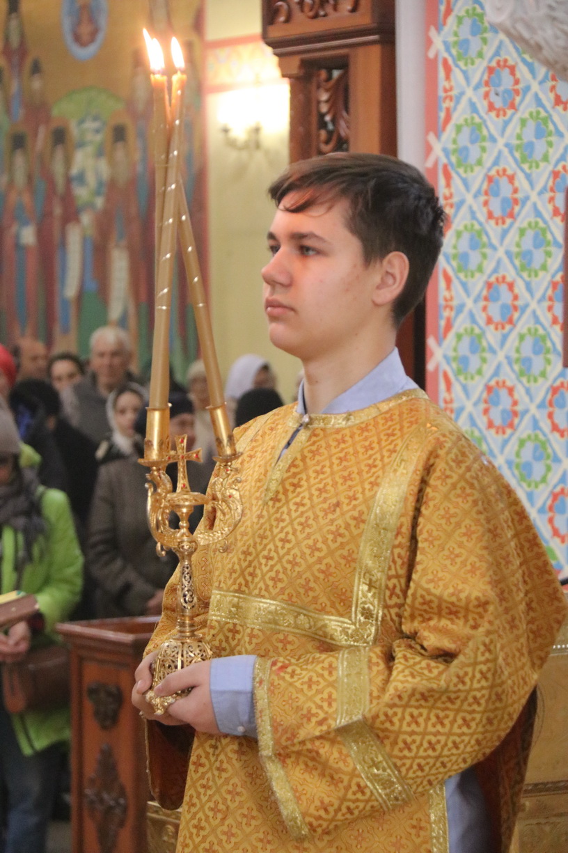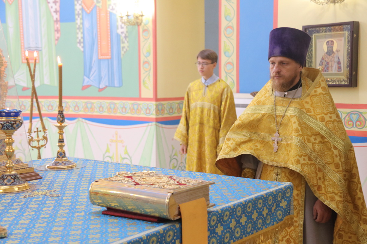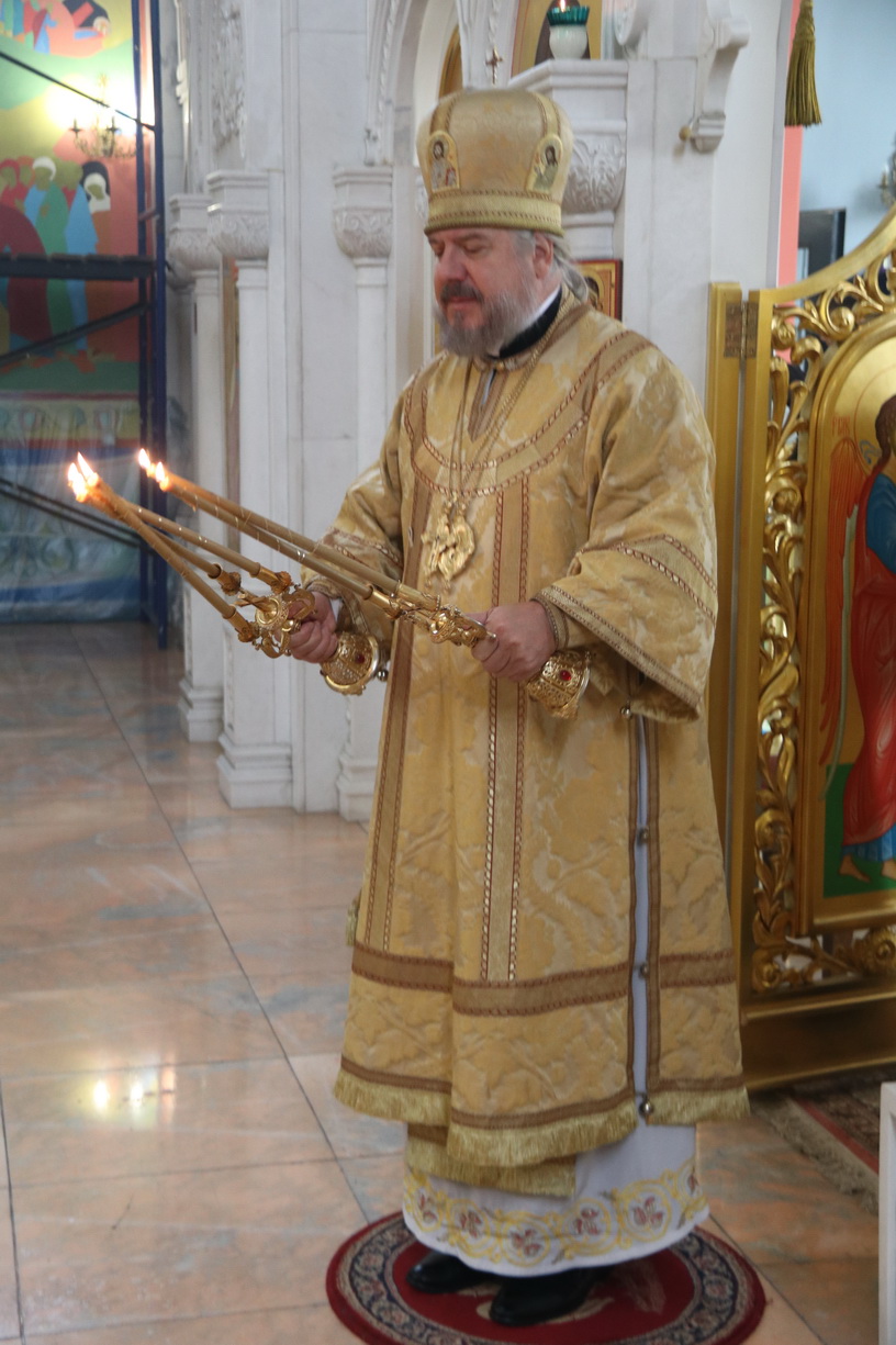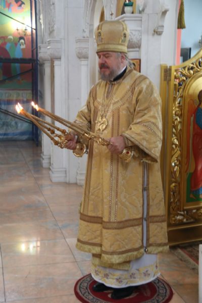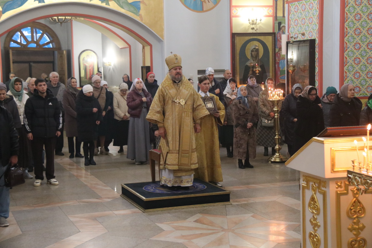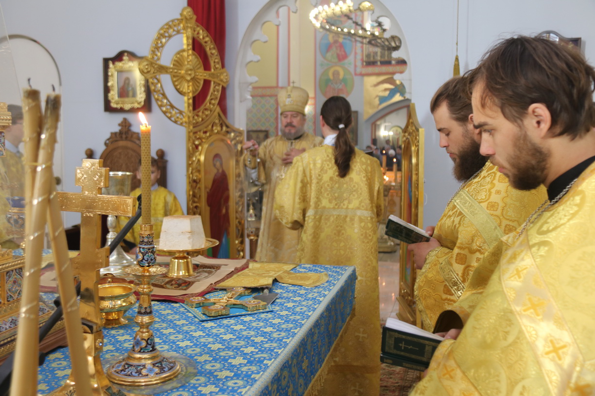 Его Преосвященству сослужили: иерей Андрей Калнин; иерей Виталий Шаркеев; иерей Иоанн Гречишников; Илия Гречишников.