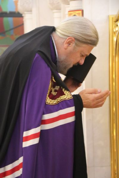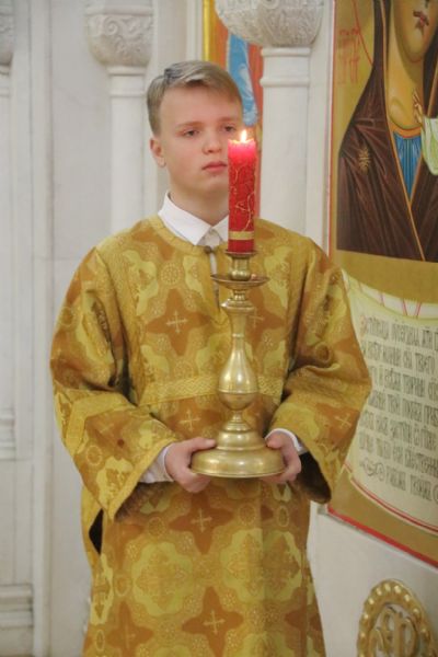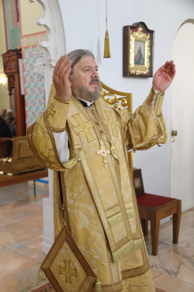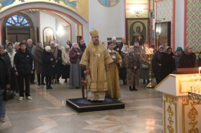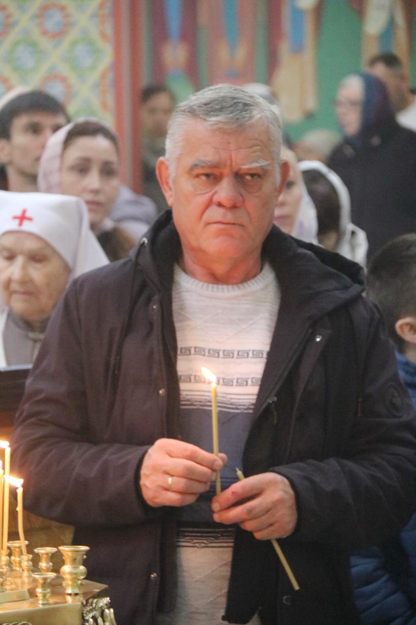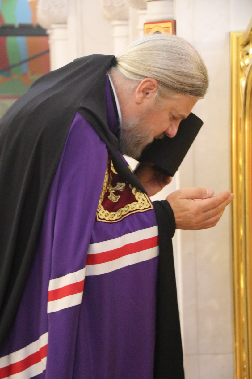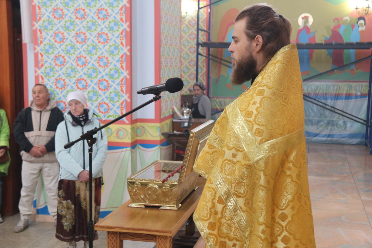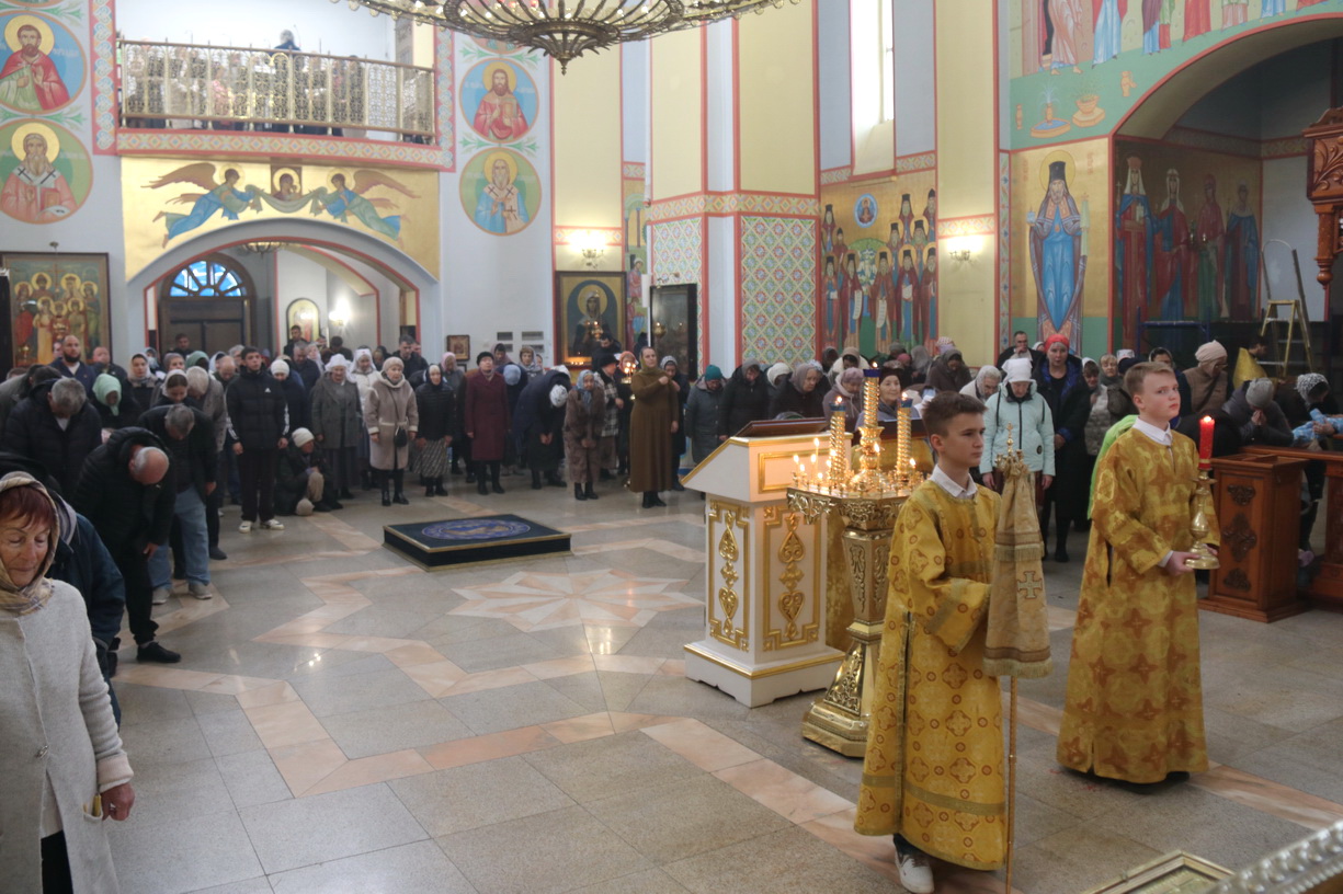 Его Преосвященству сослужили: иерей Андрей Калнин; иерей Виталий Шаркеев; иерей Иоанн Гречишников; Илия Гречишников.