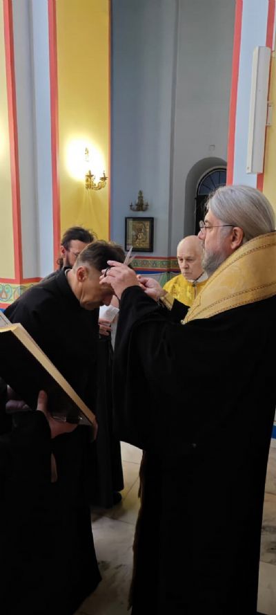 За вечерним богослужением, Владыка совершил постриг во чтеца, Михаила Красильникова, алтарника храма Рождества Христова г. Находки.