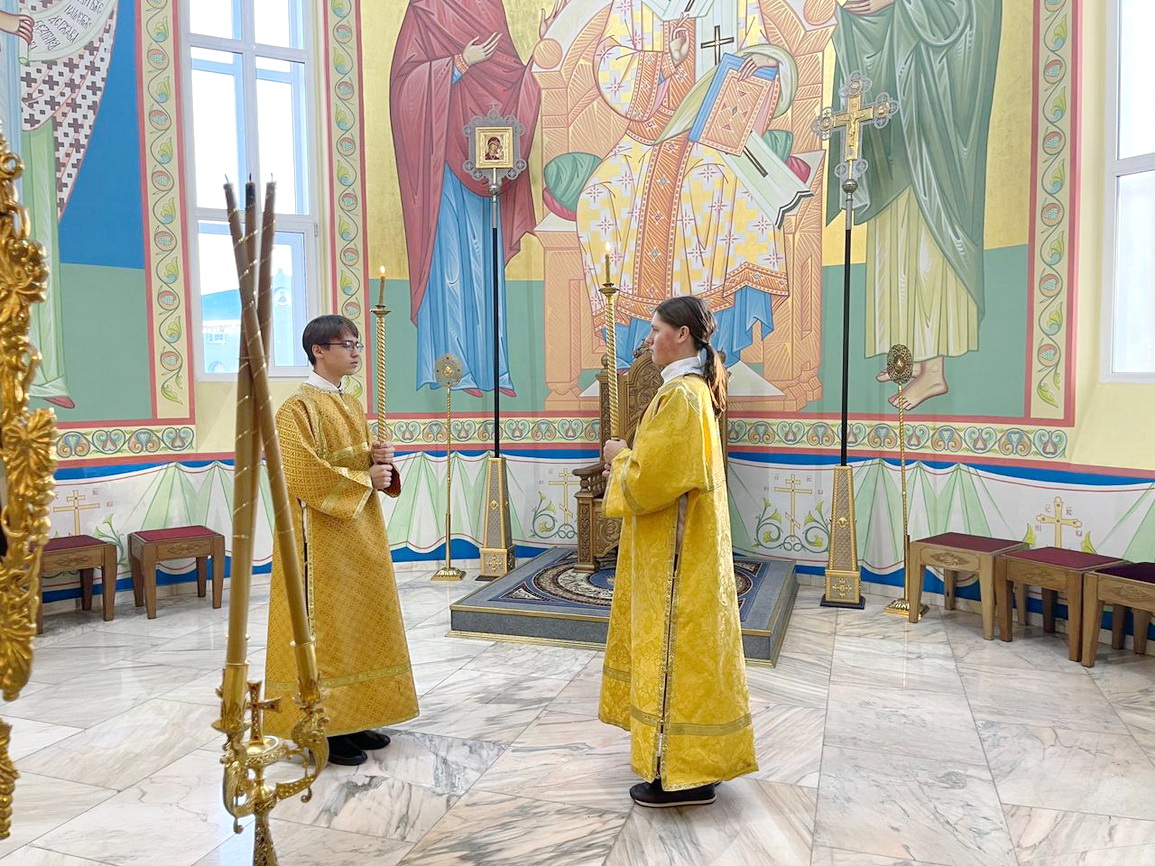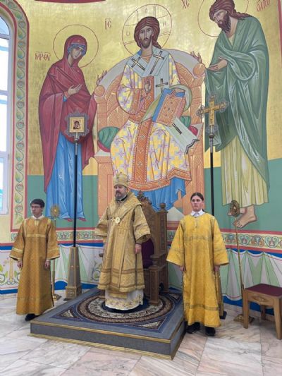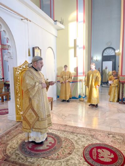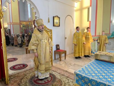 Его Преосвященству сослужили клирики Кафедрального собора.