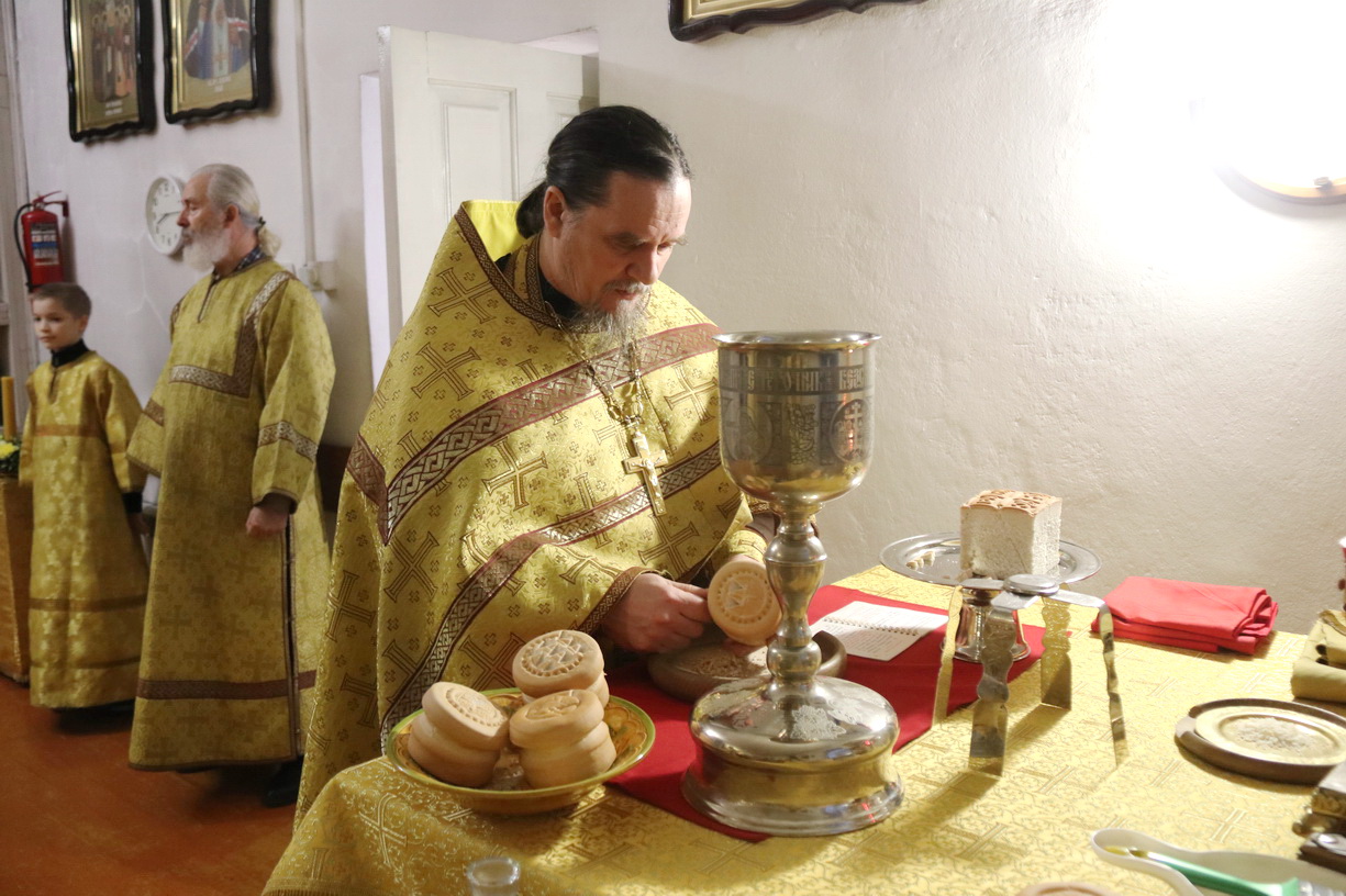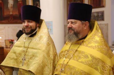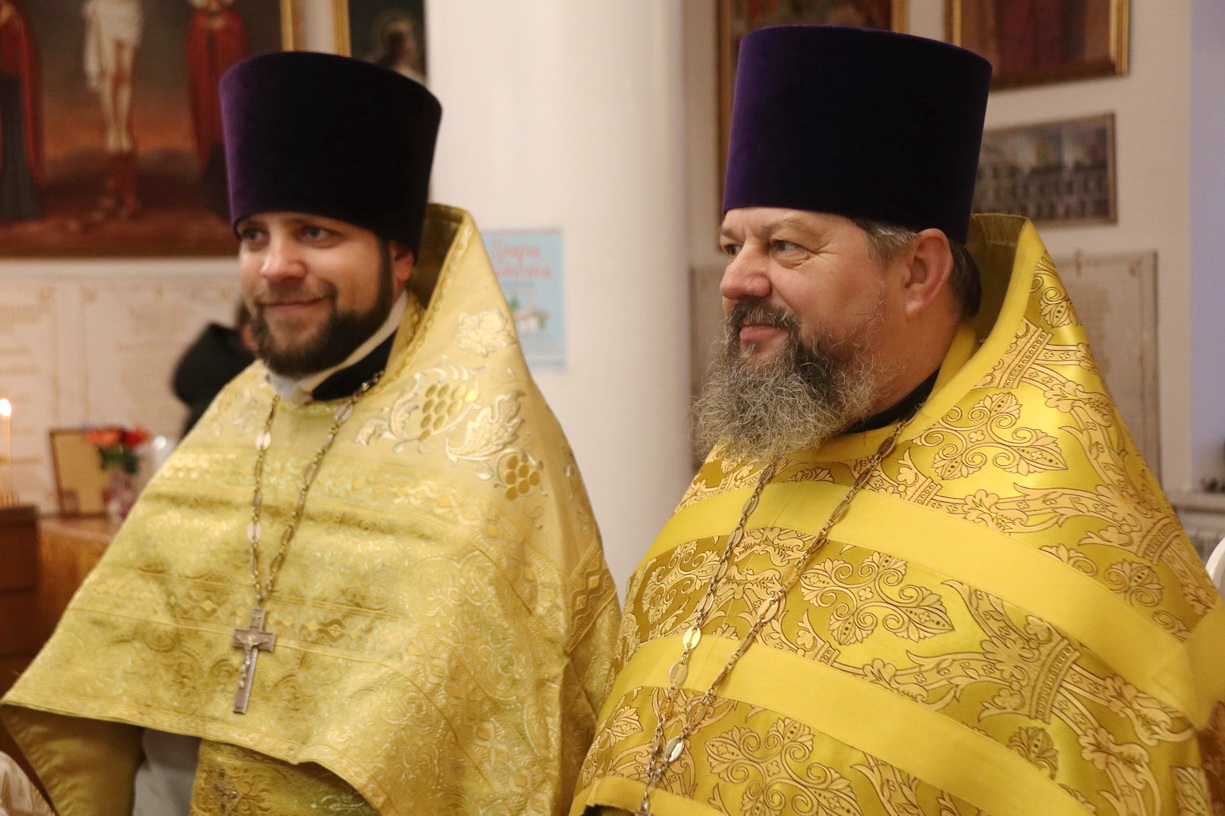 Его Преосвященству сослужили: иерей Роман Капитанюк, руководитель епархиального отдела духовного образования и катехизации, настоятель Свято-Андреевского храма ЗАТО г. Фокинo; протоиерей Владимир Серебренников, настоятель храма святого равноапостольного князя Владимира п. Ливадия; иерей Иоанн Капитанюк, настоятель храма Рождества Христова г. Находки; иерей Алексий Пикулин, настоятельСвято-Иверского храма пгт.Смоляниново; иерей Алексий Усанов, клирик Свято-Андреевского храма г.Фокино.