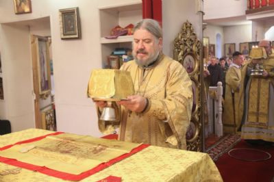 По заамвонной молитве епископ Николай в сослужении духовенства возглавил праздничный молебен пред иконой святого апостола Андрея Первозванного с частицей его мощей. Настоятель храма святого апостола Андрея Первозванного иерей Роман Капитанюк от имени клира и прихожан поблагодарил владыку за совместную молитву.