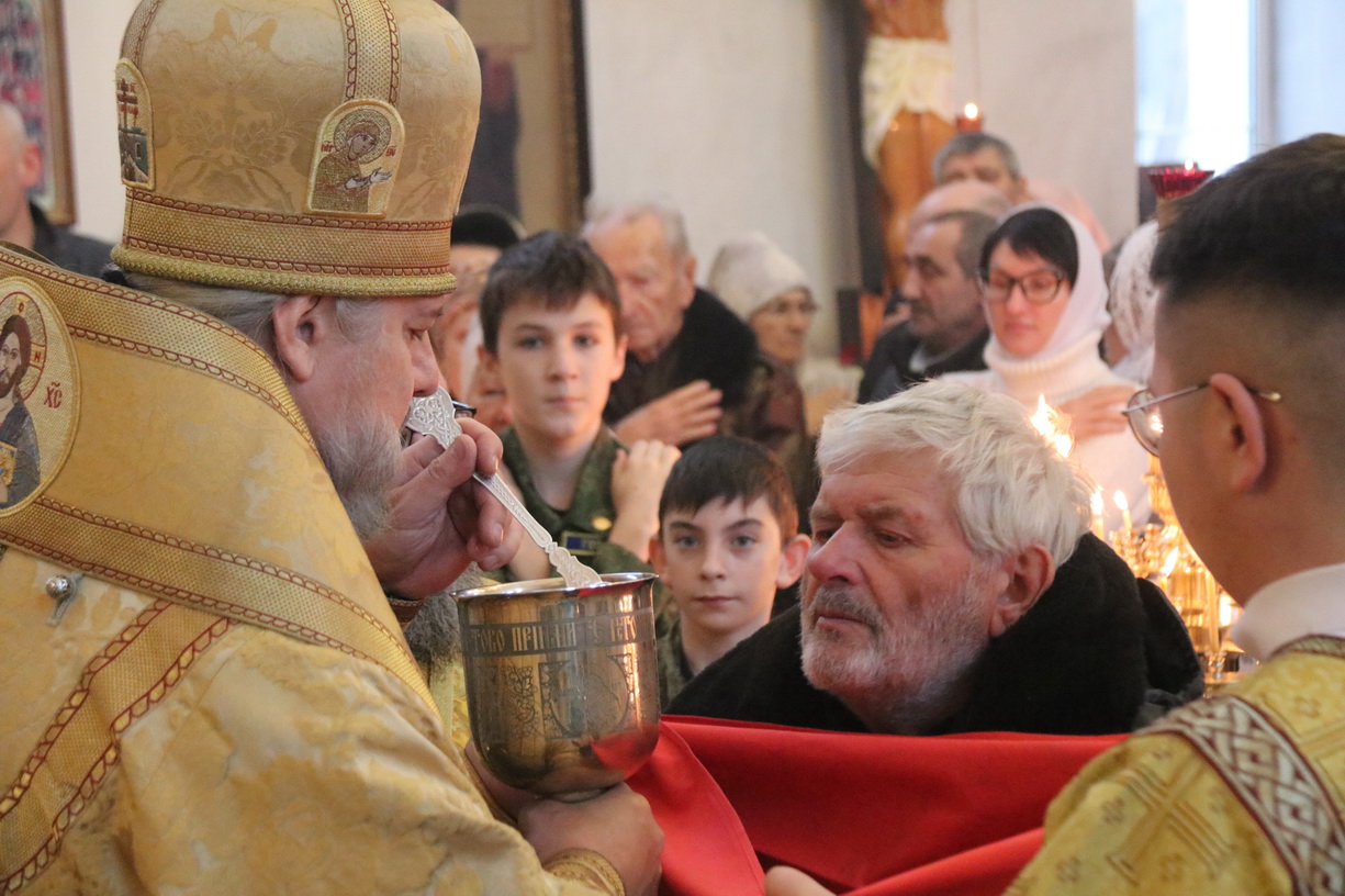 По окончании богослужения епископ Николай сугубо поздравил причастников с пинятием Святых Христовых Таин и обратился к прихожанам храма с архиерейским словом, в котором рассказал о земной жизни и трудах святого апостола Андрея Первозванного.