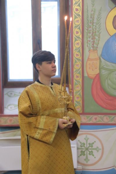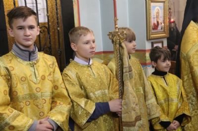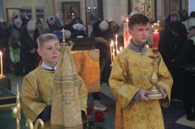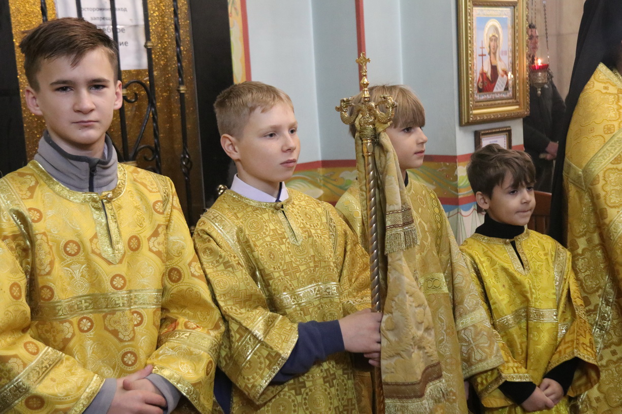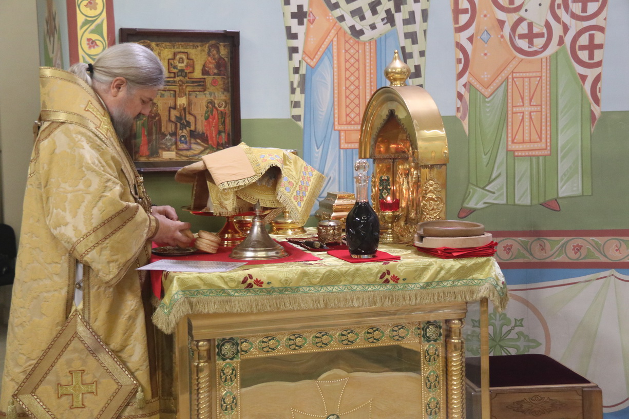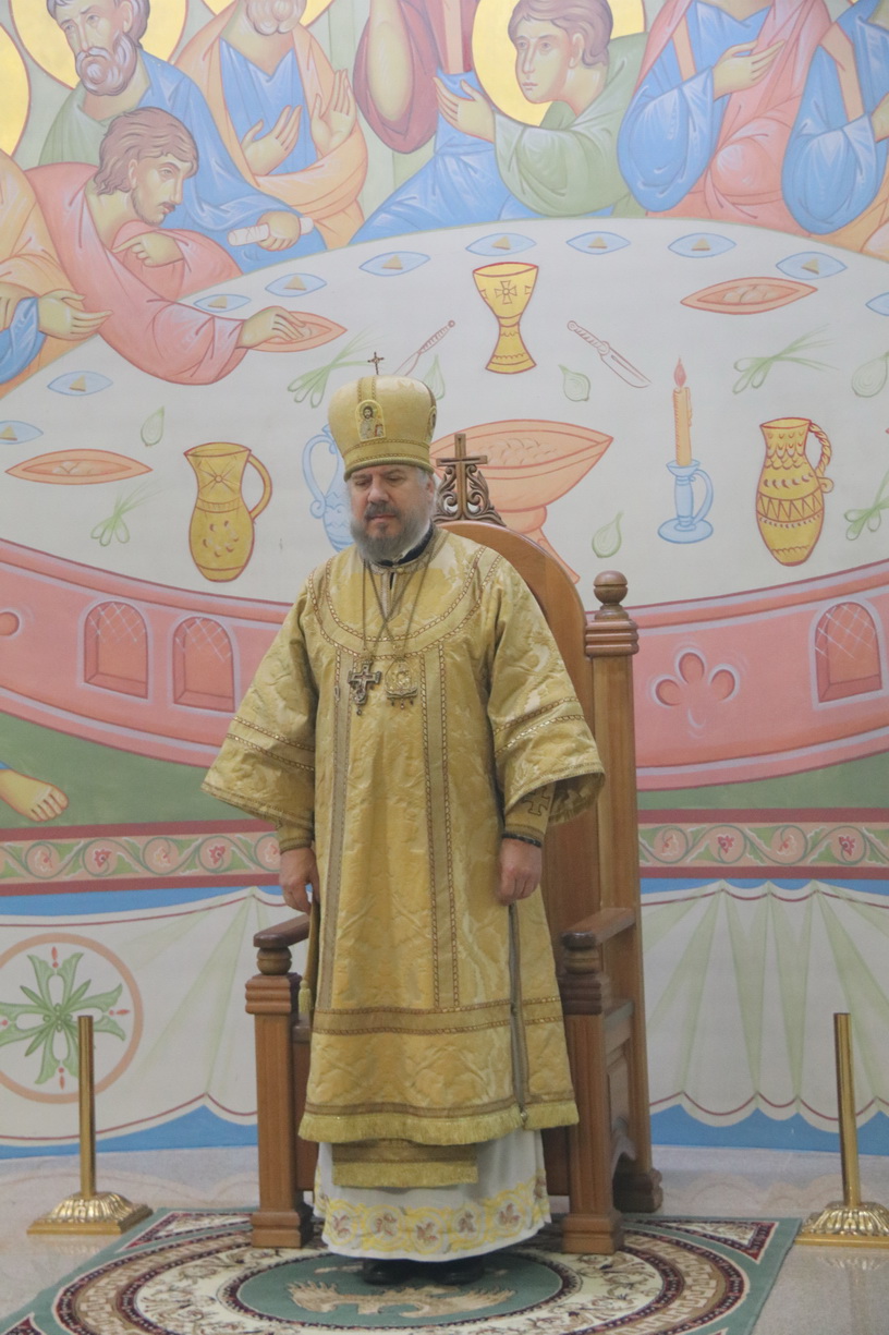 Его Преосвященству сослужили: иерей Виталий Шаркеев; иерей Андрей Попов; иеромонах Ермоген (Крещенко).