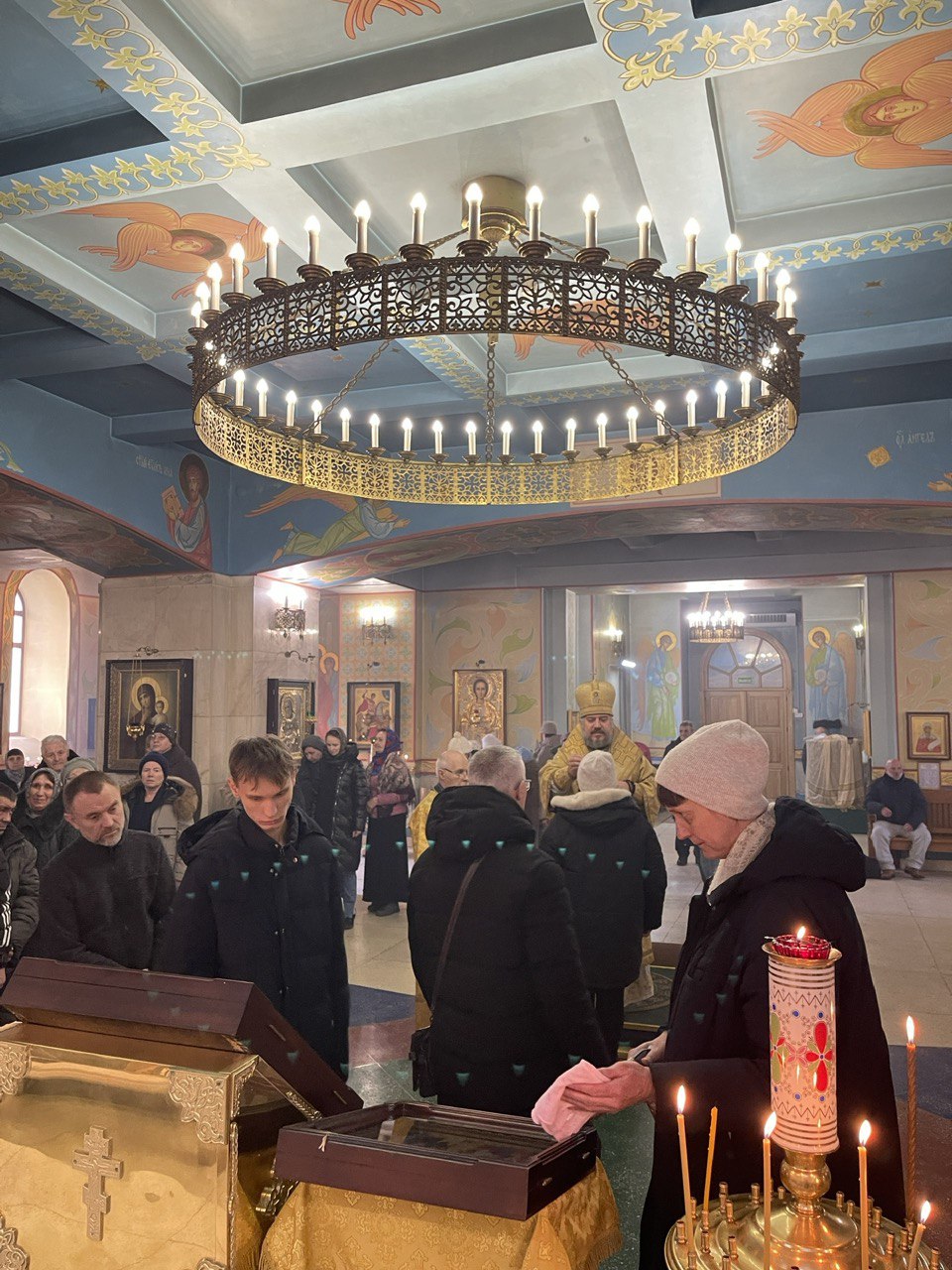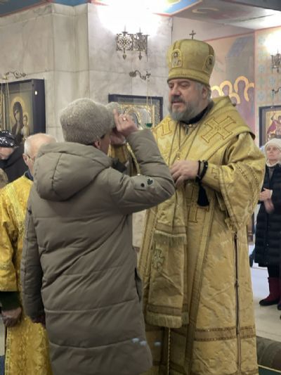 На утрене всенощного бдения, после чтения уставного Евангельского зачала, Владыка помазал духовенство и прихожан освященным елеем.