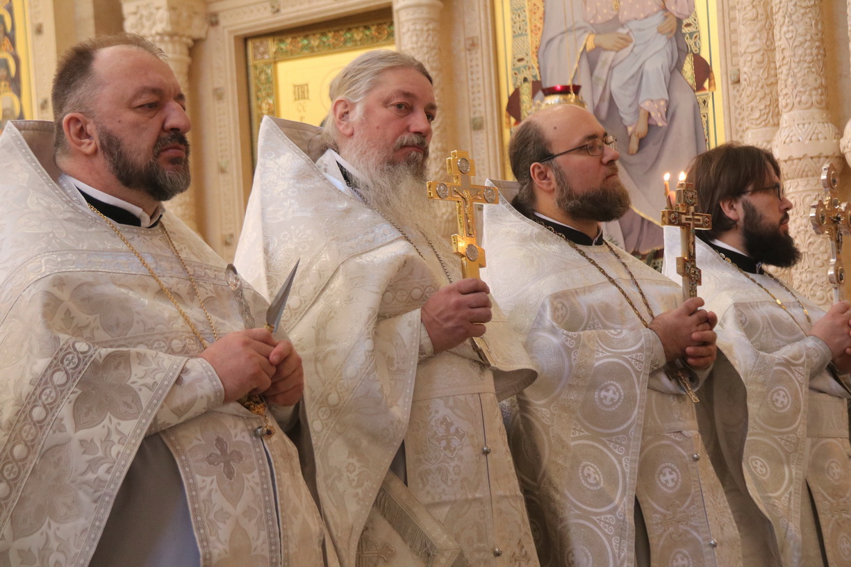 Архипастырям сослужили: протоиерей Игорь Талько, секретарь Владивостокской епархии иерей Илия Талько, ключарь Спасо-Преображенского собора иерей Максим Точуков, ответственный за сестричество социального отдела епархии протоиерей Александр Талько, протоиерей Максим Романенко, руководитель отдела епархиального религиозного образования и катехизации протоиерей Ростислав Мороз, игумен Антоний (Каменчук), протоиерей Вадим Маишев, протоиерей Даниил Нефедьев, протоиерей Андрей Калчев, протоиерей Димитрий Федорин, благочинные благочиний Владивостокской епархии и духовенство епархии.