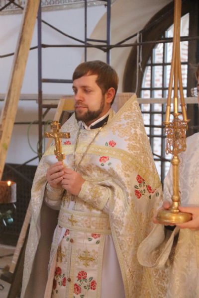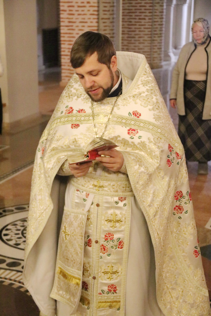 Его Преосвященству сослужили: иерей Иоанн Капитанюк, настоятель храма Рождества Христова г. Находки; иерей Андрей Калнин, ключарь Казанского собора г. Находки; иерей Андрей Попов.
