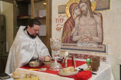 Перед началом службы многие прихожане исповедовались, чтобы причаститься Святых Христовых Тайн.