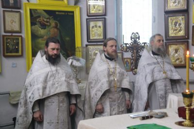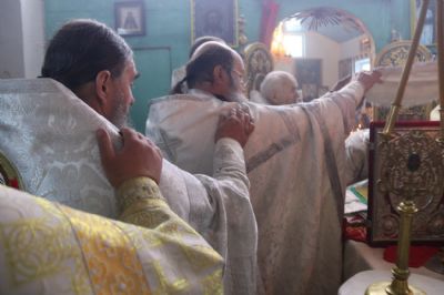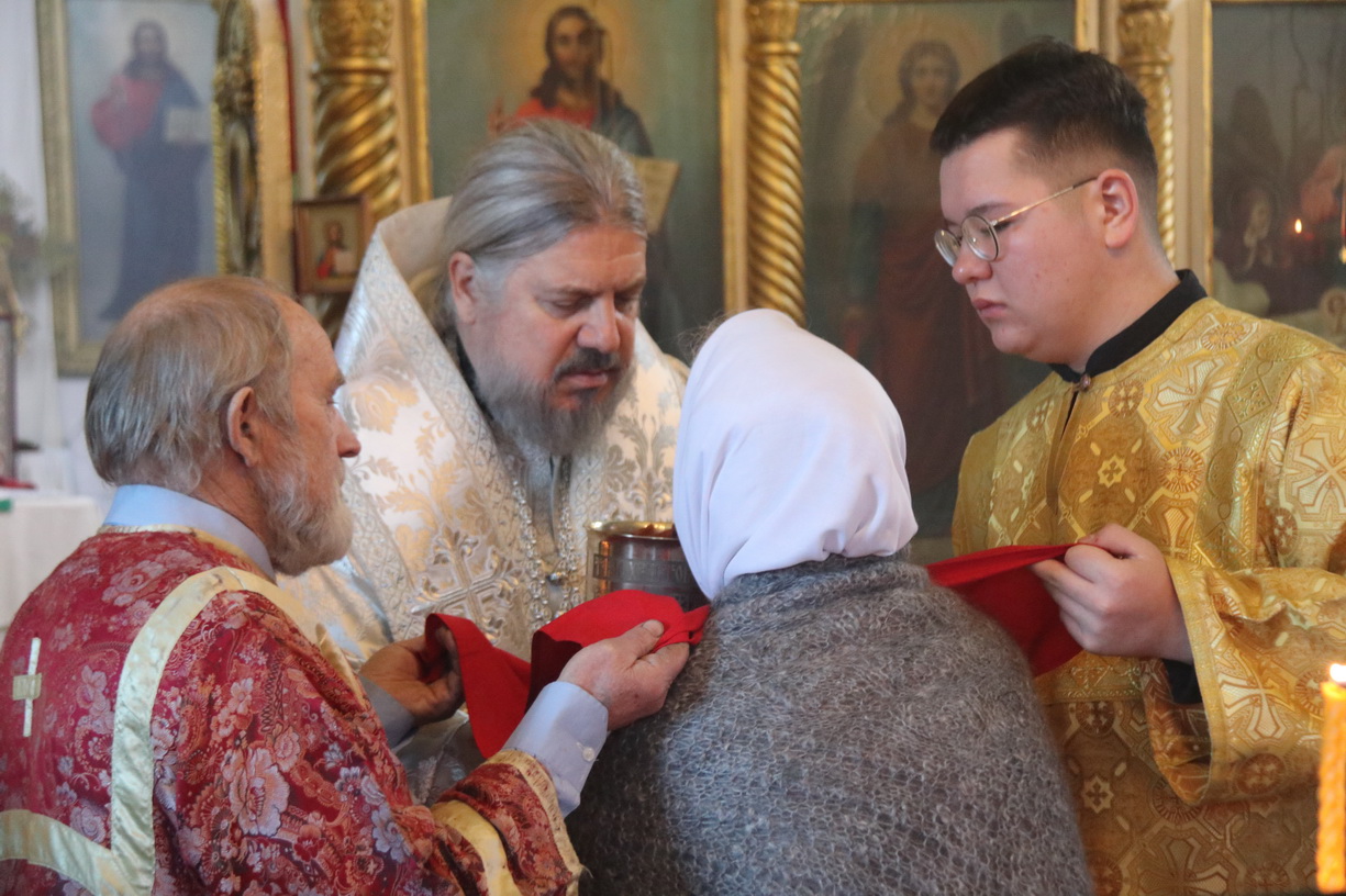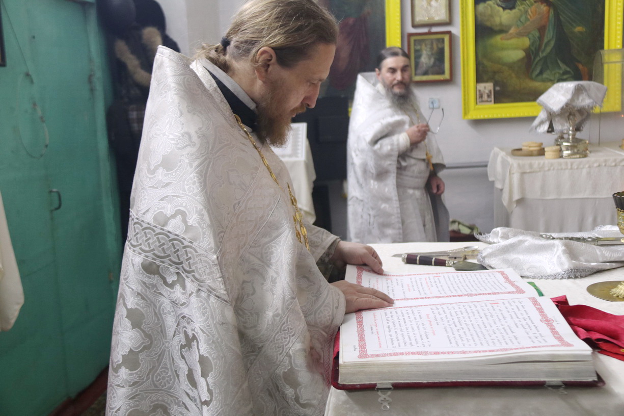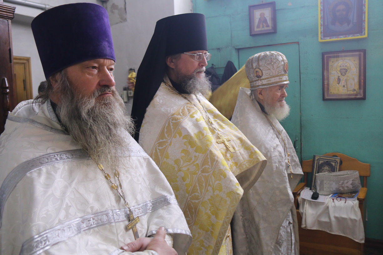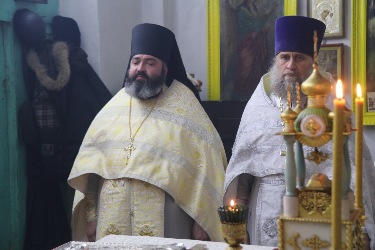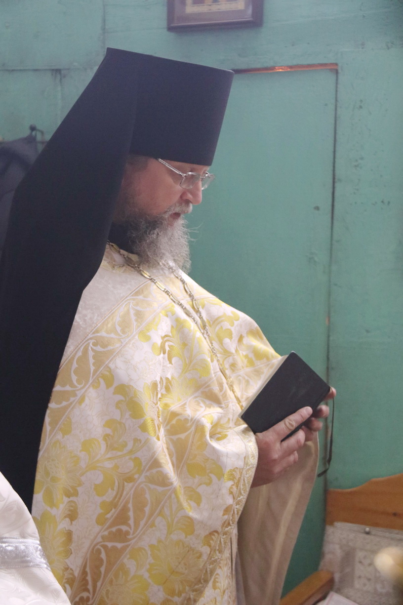 Его Преосвященству сослужили: митрофорный протоиерей Василий Кабанов, настоятель храма Рождества Пресвятой Богородицы, г. Партизанска; иеромонах Силуан (Березовский), настоятель храма Сретения Господня г. Партизанска; игумен Пимен (Литовкин), наместник Свято-Троицкого-Николаевского мужского монастыря п. Горные Ключи (пгт.Шмаковка); протоиерей Андрей Гречишников, настоятель Свято-Успенского храма с.Владимиро-Александровское; протоиерей Павел (Петрунин), настоятель храма Казанской иконы Божией Матери с.Казанка; иерей Андрей Калнин, ключарь Казанского Кафедрального собора г. Находки; иерей Иоанн Гречишников, настоятель храма Живоначальной Троицы п. Врангель; иерей Сергий Вовк, клирик Рождества-Богородицкого храма г. Партизанска; иеромонах Ермоген (Крещенко), клирик Казанского собора г. Находки.