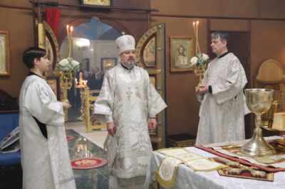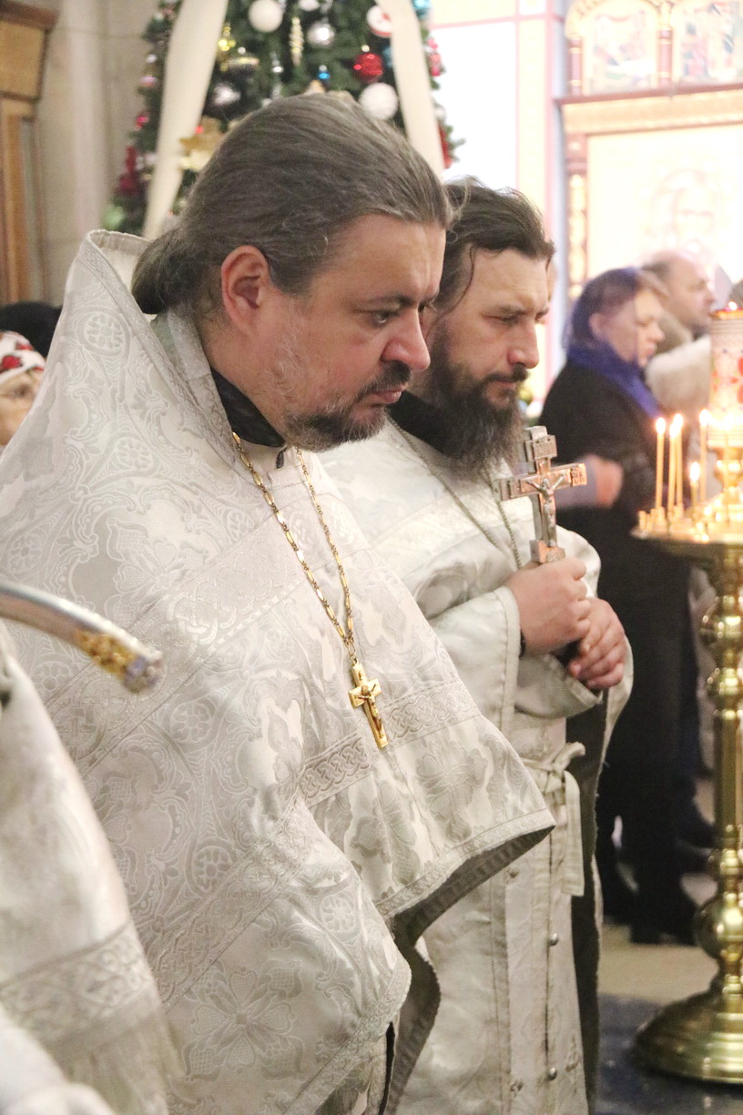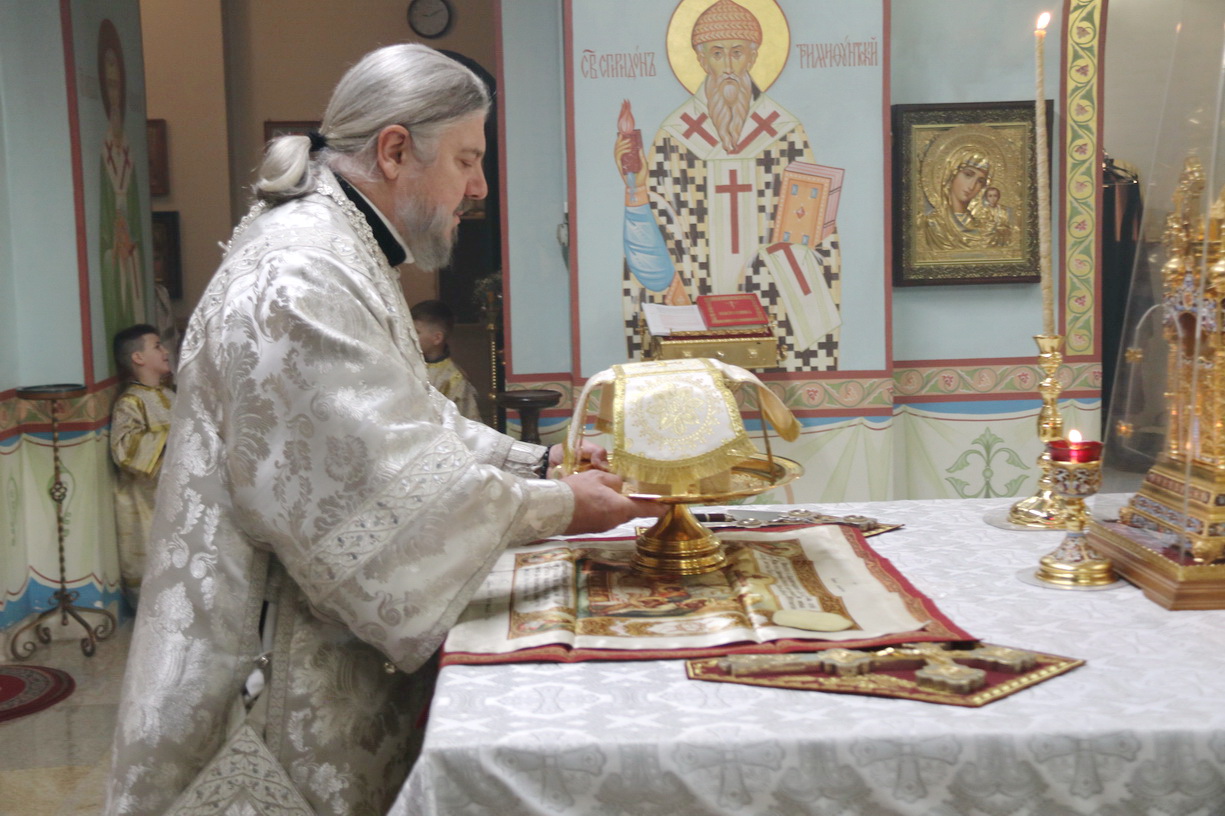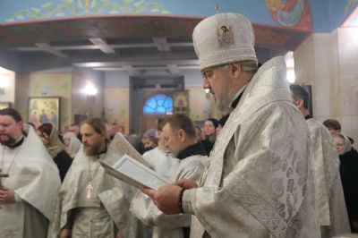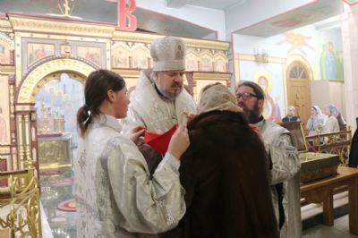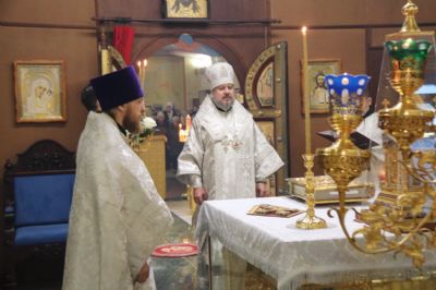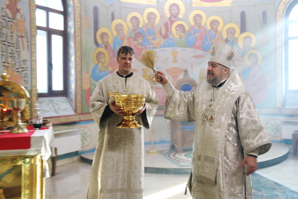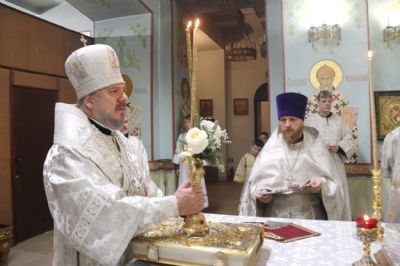Его Преосвященству сослужили: иерей Андрей Калнин; иерей Виталий Шаркеев; иерей Андрей Попов; иеромонах Ермоген (Крещенко) и иерей Илия Гречишников.