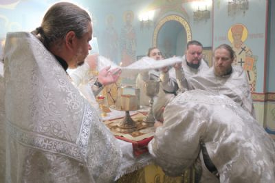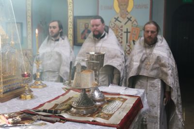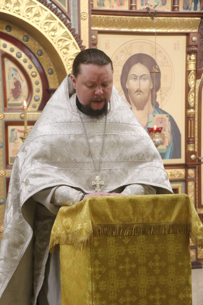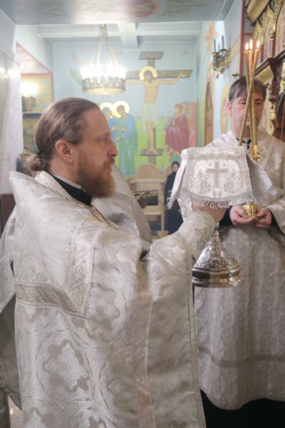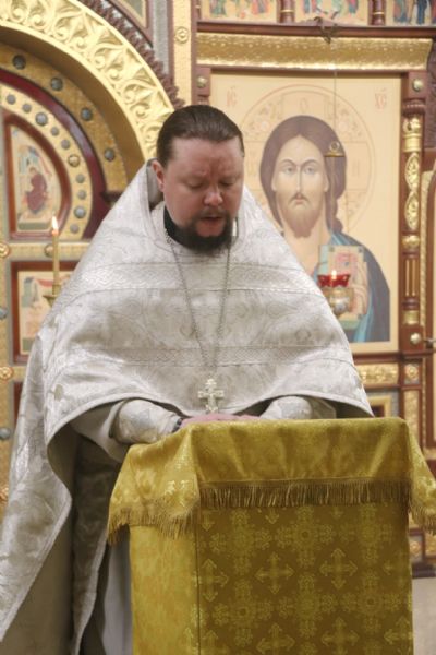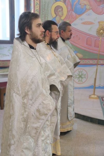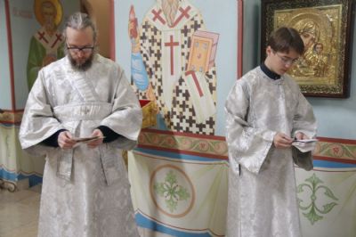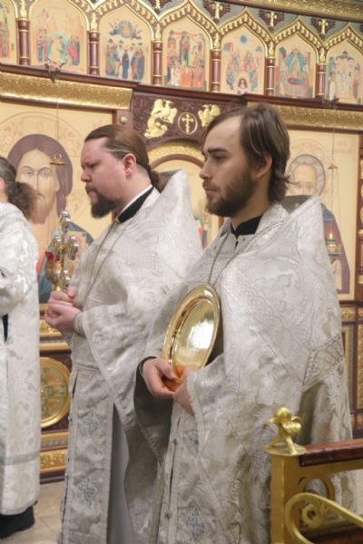 Его Преосвященству сослужили клирики соборного храма.