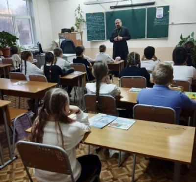 Руководитель миссионерского отдела Находкинской епархии иерей Виталий Шаркеев посетил среднюю образовательную школу No 12 г. Находки.