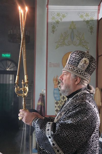 Его Преосвященству сослужили: иерей Андрей Калнин, ризничий собора; иерей Андрей Попов; иеромонах Ермоген (Крещенко) и иерей Илия Гречишников.
