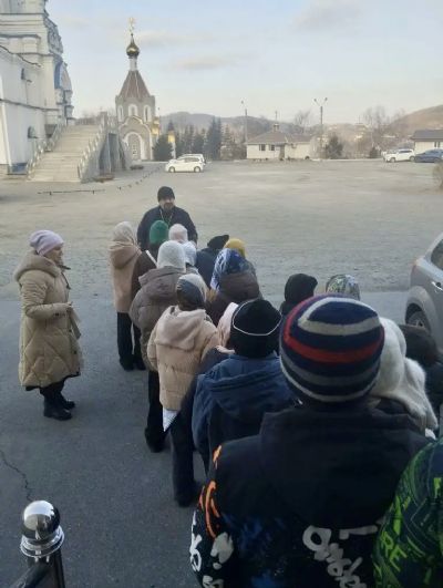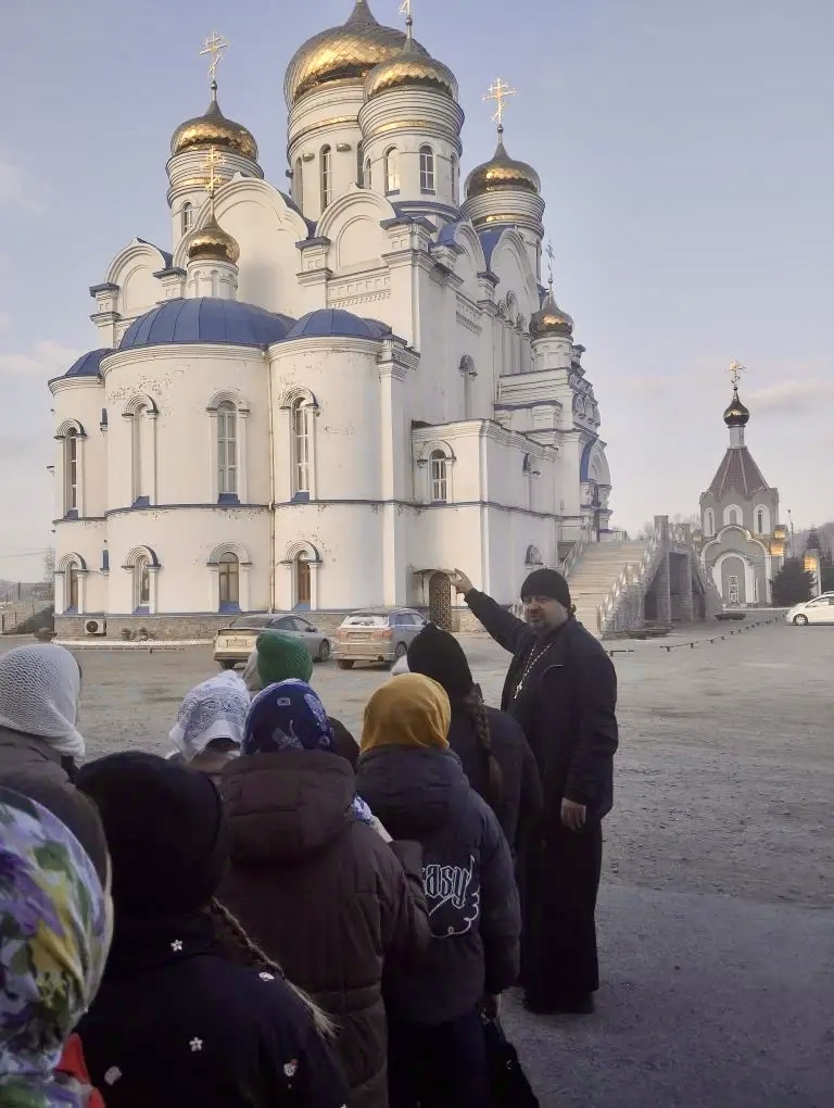 Руководитель миссионерского отдела Находкинской епархии иерей Виталий Шаркеев провел экскурсию для учеников 5 класса школы No12 г. Находки.