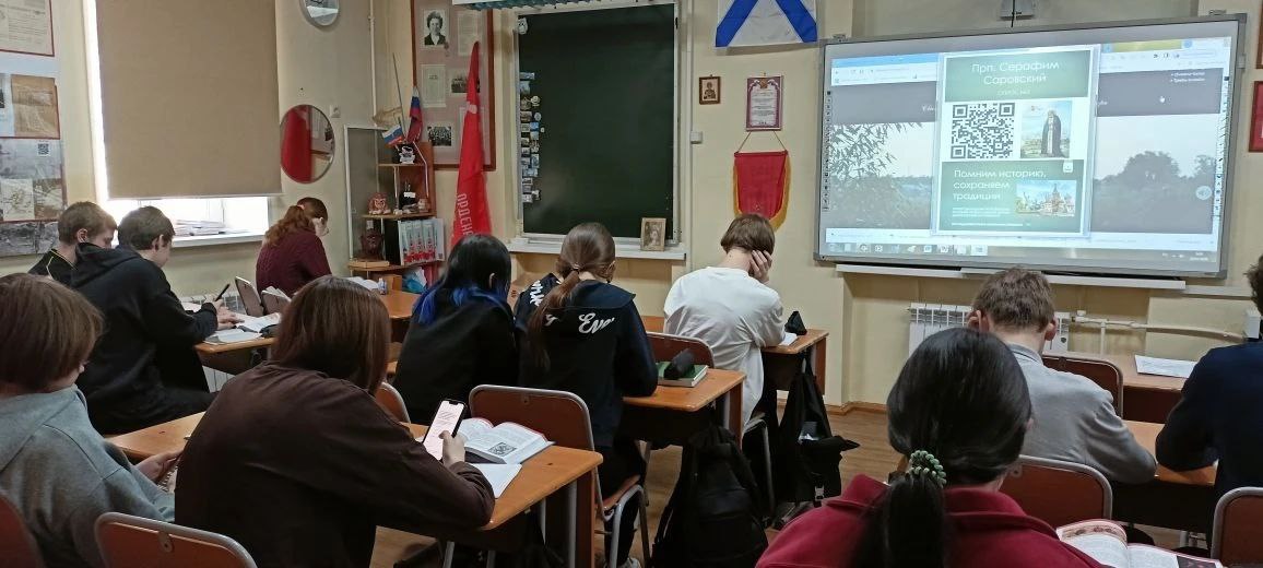 Встреча прошла не как обычный урок: ребята посмотрели анимационный фильм про батюшку Серафима, отец Виталий познакомил учащихся с личностью старца и событиями, связанными с жизнью, подвигами, чудесами преподобного Серафима Саровского, его служением на благо Русской Церкви.