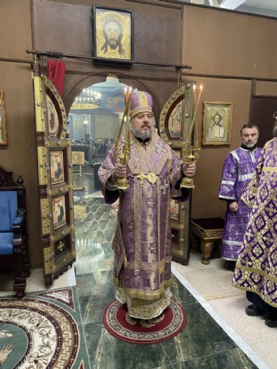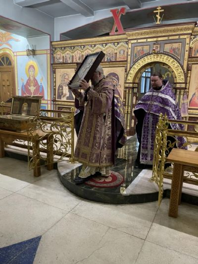 В канун Крестопоклонной недели епископ Николай возглавил всенощное бдение с чином выноса Креста в Казанском соборе г. Находки.