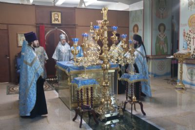 На утрене, после чтения Евангельского зачала, Владыка помазал духовенство и прихожан храма освященным елеем.