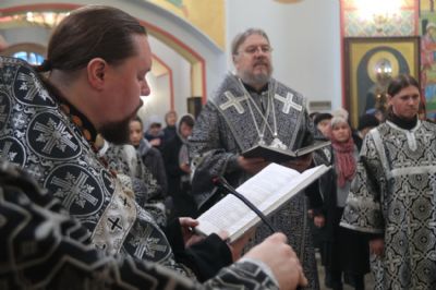 Его Преосвященству сослужили: иерей Андрей Калнин, ризничий Казанского собора; иерей Виталий Шаркеев; иерей Андрей Попов; иеромонах Ермоген (Крещенко) и иерей Илия Гречишников.