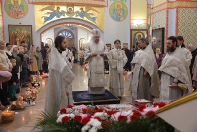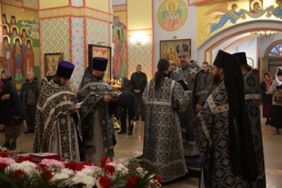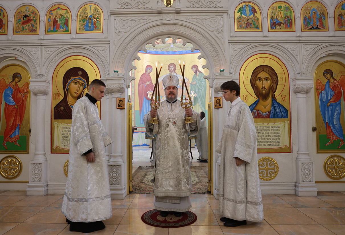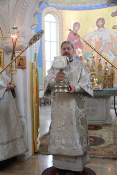 Его Преосвященству сослужили: иерей Андрей Калнин, ризничий Казанского собора; иерей Виталий Шаркеев; иерей Андрей Попов; иеромонах Ермоген (Крещенко) и иерей Илия Гречишников.
