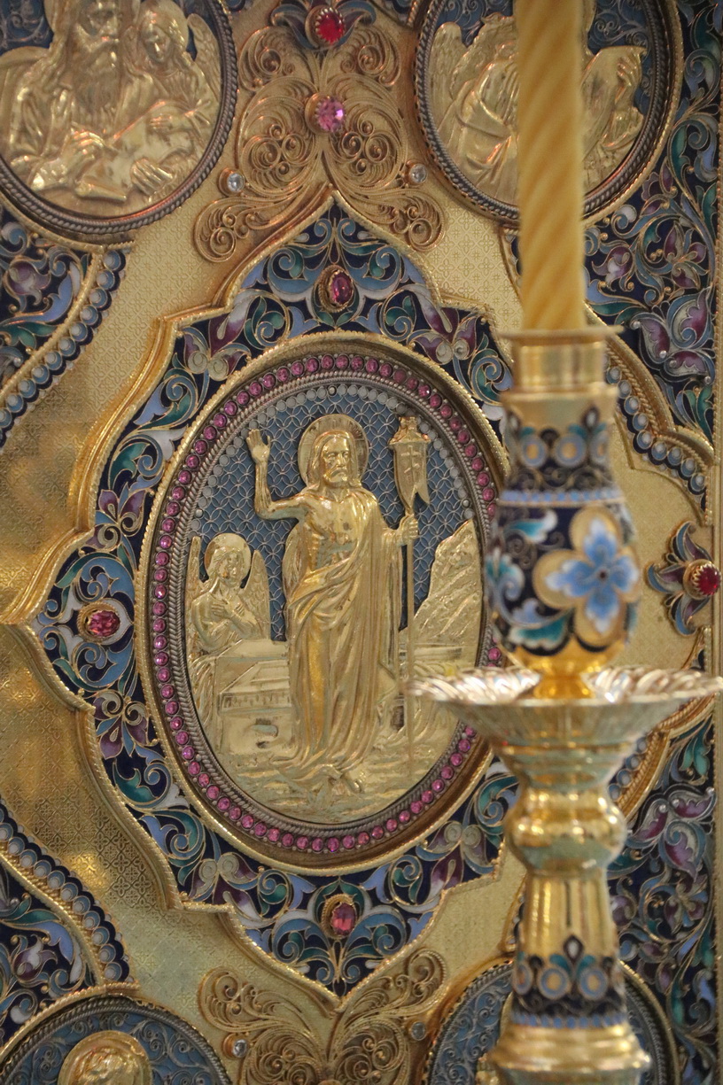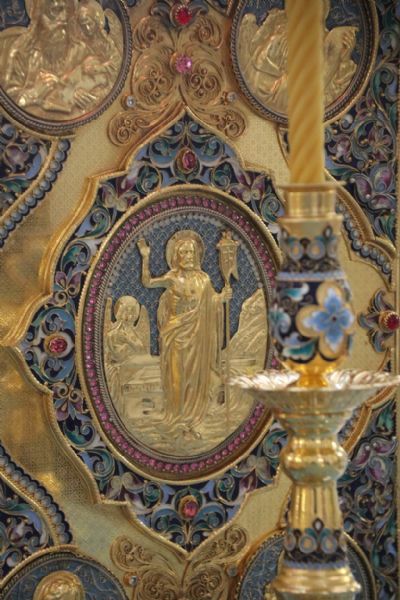 Перед евангельским чтением торжественно исполняется гимн «Воскресни, Боже, суди земли…». Во время исполнения этого песнопения священнослужители меняют темные великопостные облачения на белые — праздничные. Убранство храма также становится пасхальным. Переоблачение священнослужителей напоминает о том, как в древности после чтения паримий Великой субботы в храм вступали новокрещеные в белых одеждах, а также указывает символически на ангелов, благовествовавших о Воскресении Христовом. Читается Евангелие (Мф. 28:1–20), повествующее о событиях Воскресения. Херувимская песнь заменяется текстом, который мы слышим лишь один раз в год: «Да молчит всякая плоть человеча, и да стоит со страхом и трепетом, и ничтоже земное в себе да помышляет; Царь бо царствующих, и Господь господствующих, приходит заклатися и датися в снедь верным. Предходят же Сему лицы ангельстии со всяким Началом и Властию, многоочитии Херувими, и шестокрилатии Серафими, лица закрывающе, и вопиюще песнь: Аллилуйя, Аллилуйя, Аллилуйя».