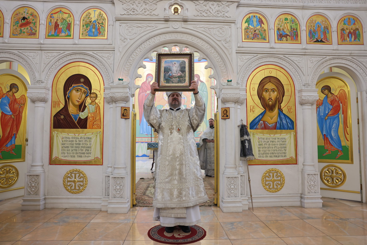 После отпуста Литургии архипастырь совершил, предписанное богослужебным Уставом, благословение хлебов и вина. Это благословение ежегодно совершается в память о том, как древние христиане, оставаясь в храме после Литургии до Пасхальной утрени, вкушением освященных хлеба и вина подкрепляли себя на подвиг бдения в эту священную и спасительную ночь.