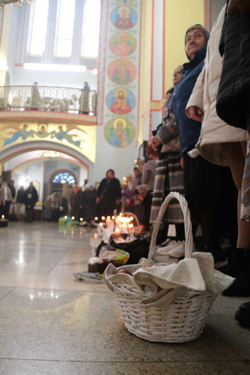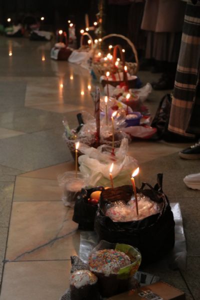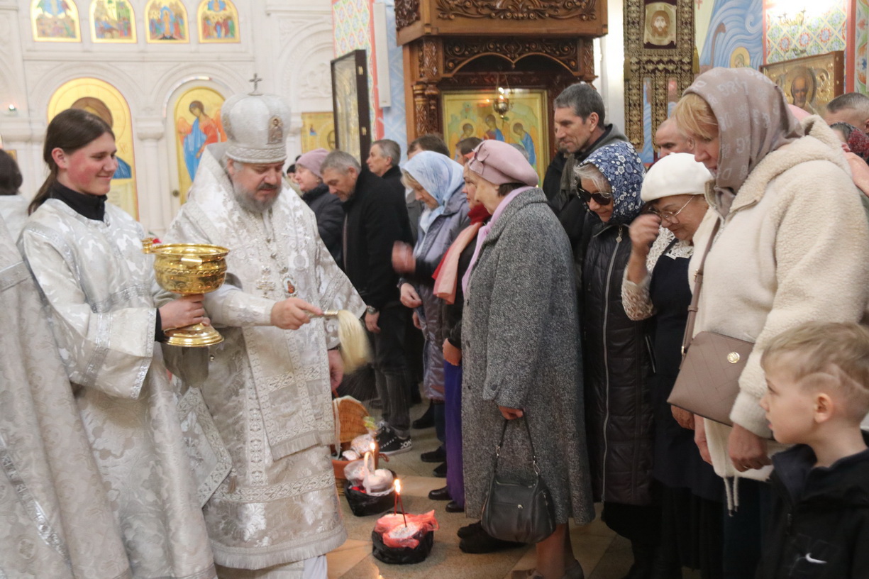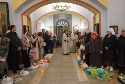 В Преблагословенную Субботу после завершения богослужения православные христиане приносят в храмы для освящения куличи, пасхи и крашеные яйца.