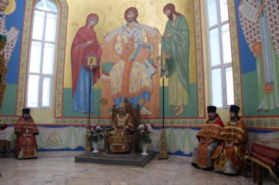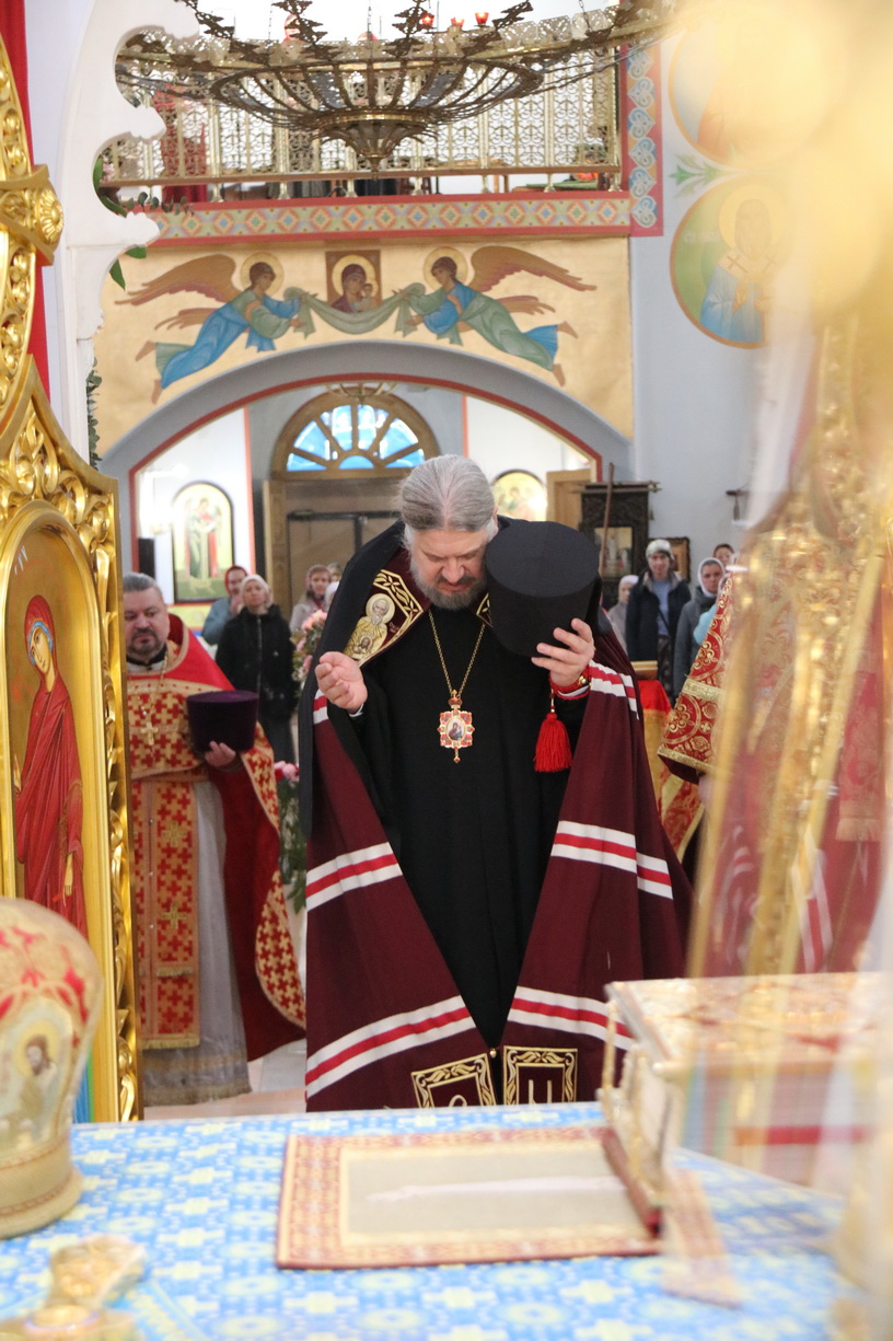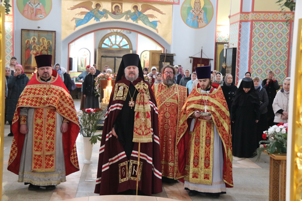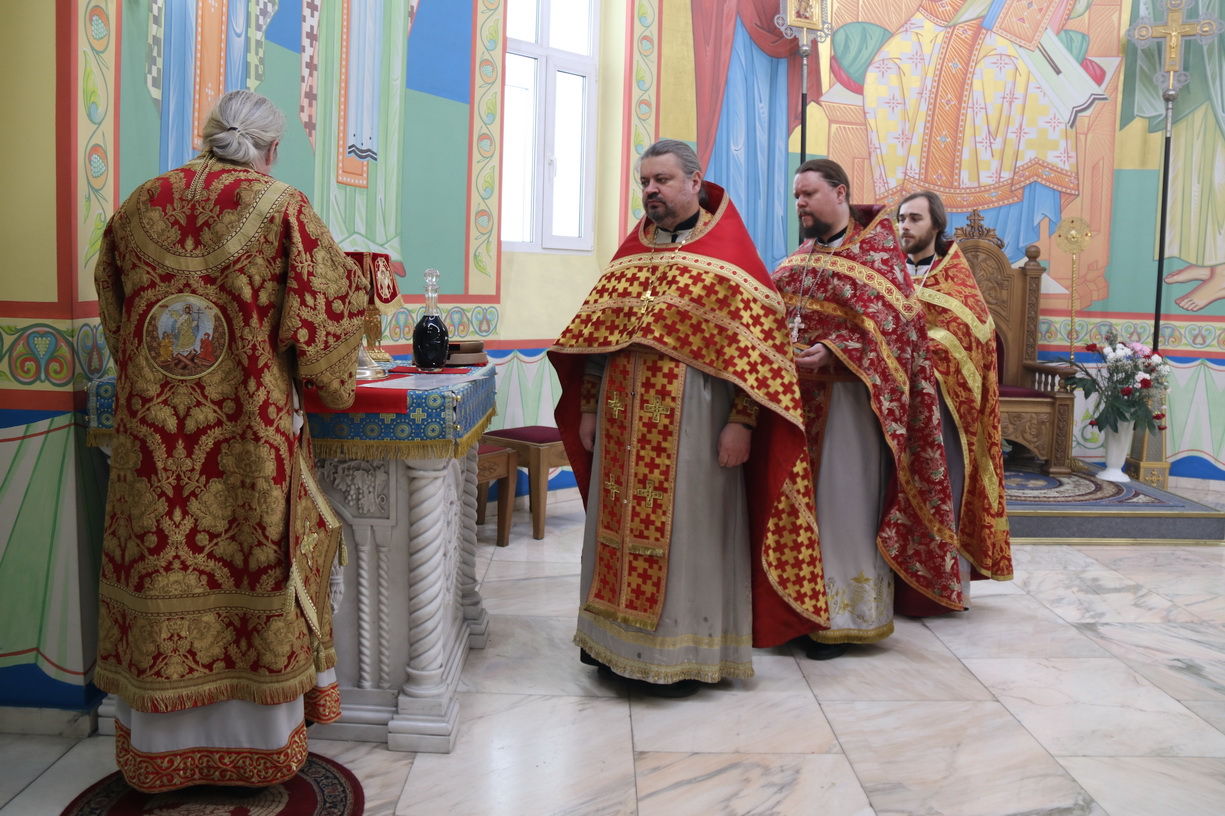 Его Преосвященству сослужили: иерей Виталий Шаркеев; иерей Андрей Попов; иеромонах Ермоген (Крещенко) и иерей Илия Гречишников.