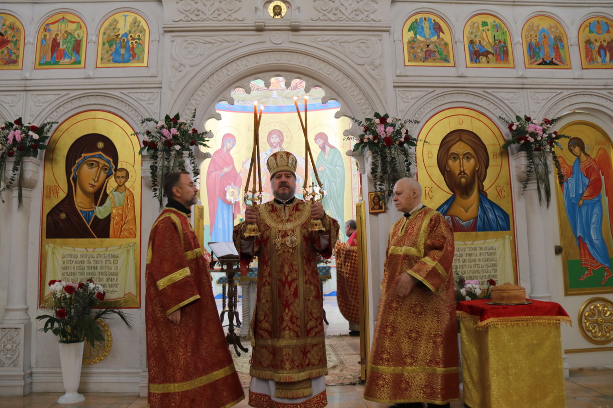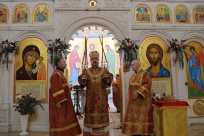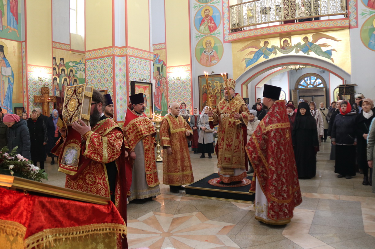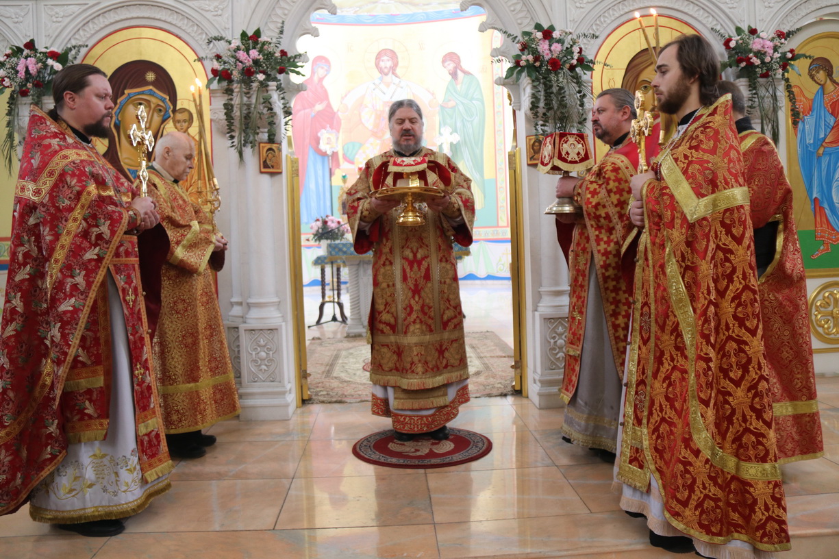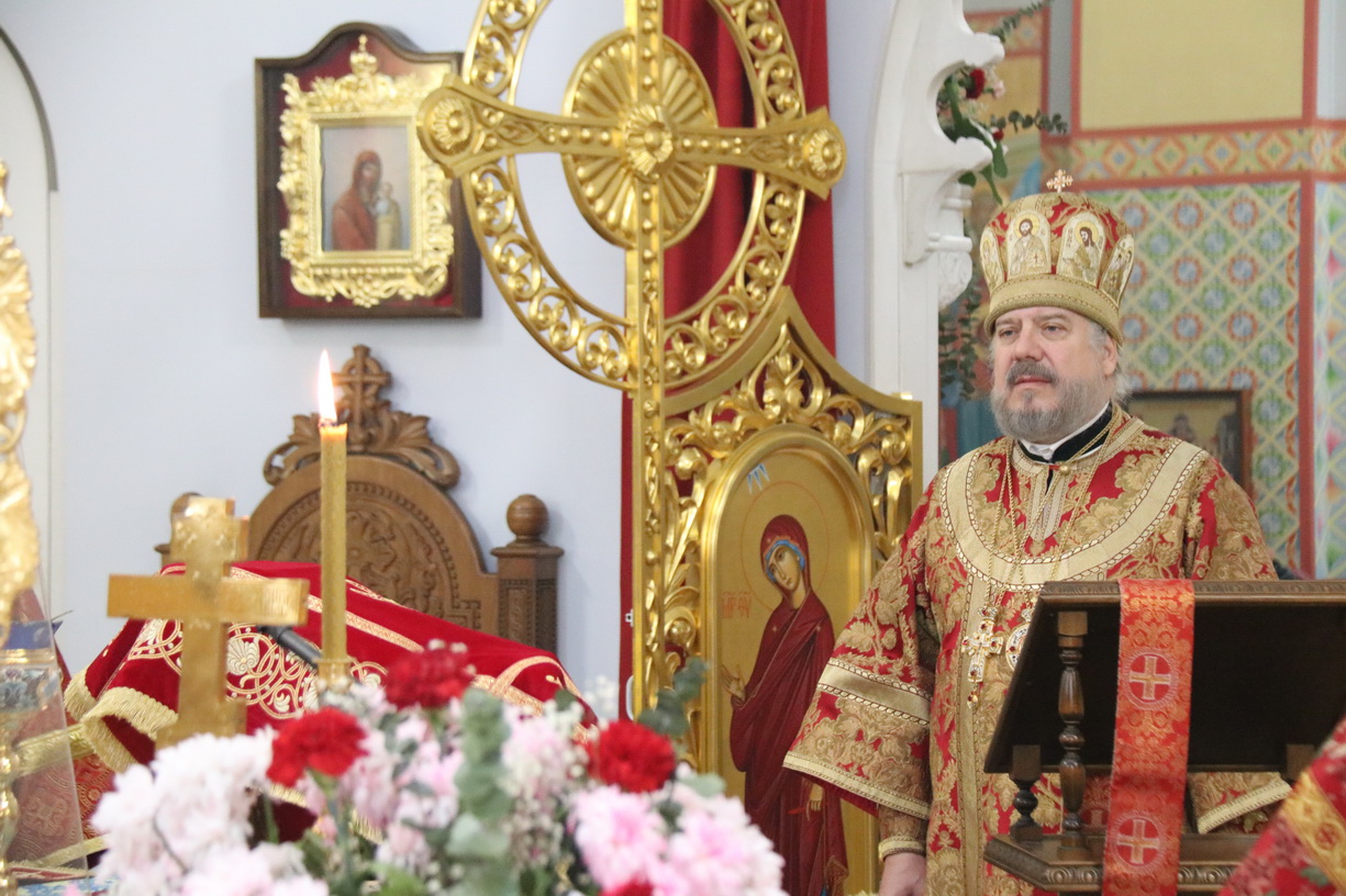 Его Преосвященству сослужили: иерей Виталий Шаркеев; иерей Андрей Попов; иеромонах Ермоген (Крещенко) и иерей Илия Гречишников.