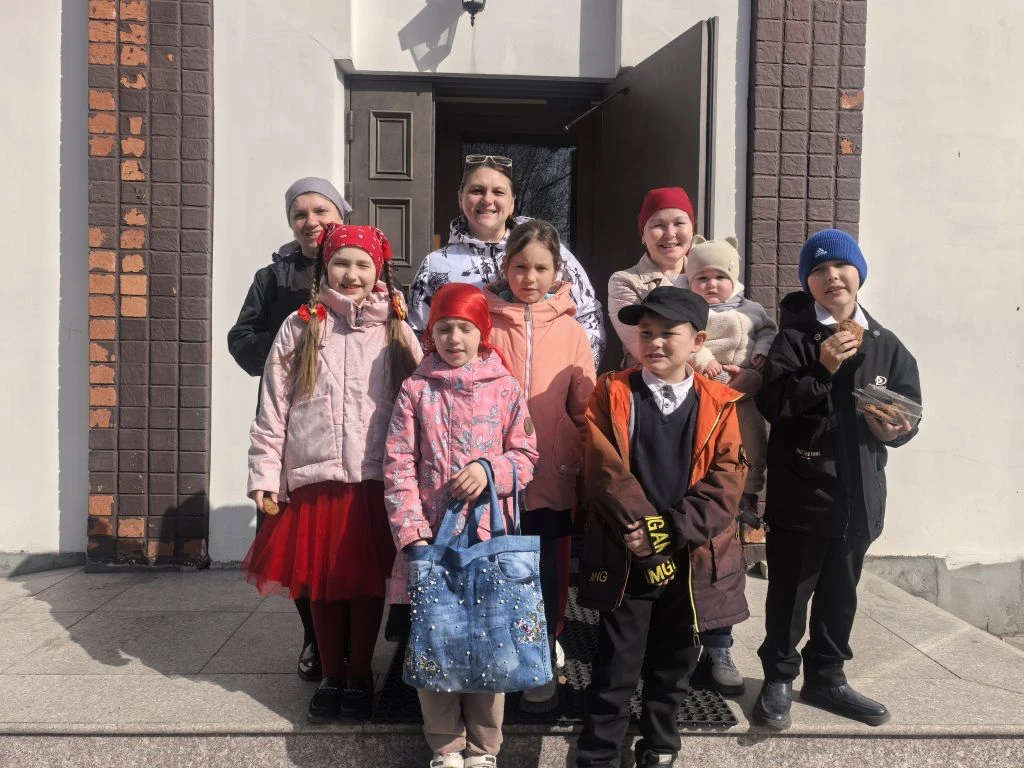 Юные прихожане храма свт. Николая Чудотворца прочитали пасхальные стихотворения и спели песню. Также дети приготовили бойцам подарки — пасхальные пряники.