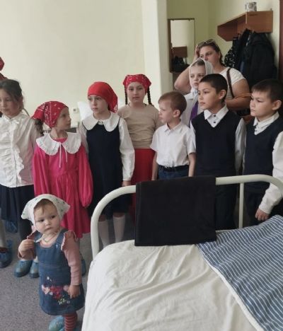 Пасхальную радость принесли раненым бойцам в военный госпиталь юные прихожане Храмов г. Фокино и г. Большой Камень.