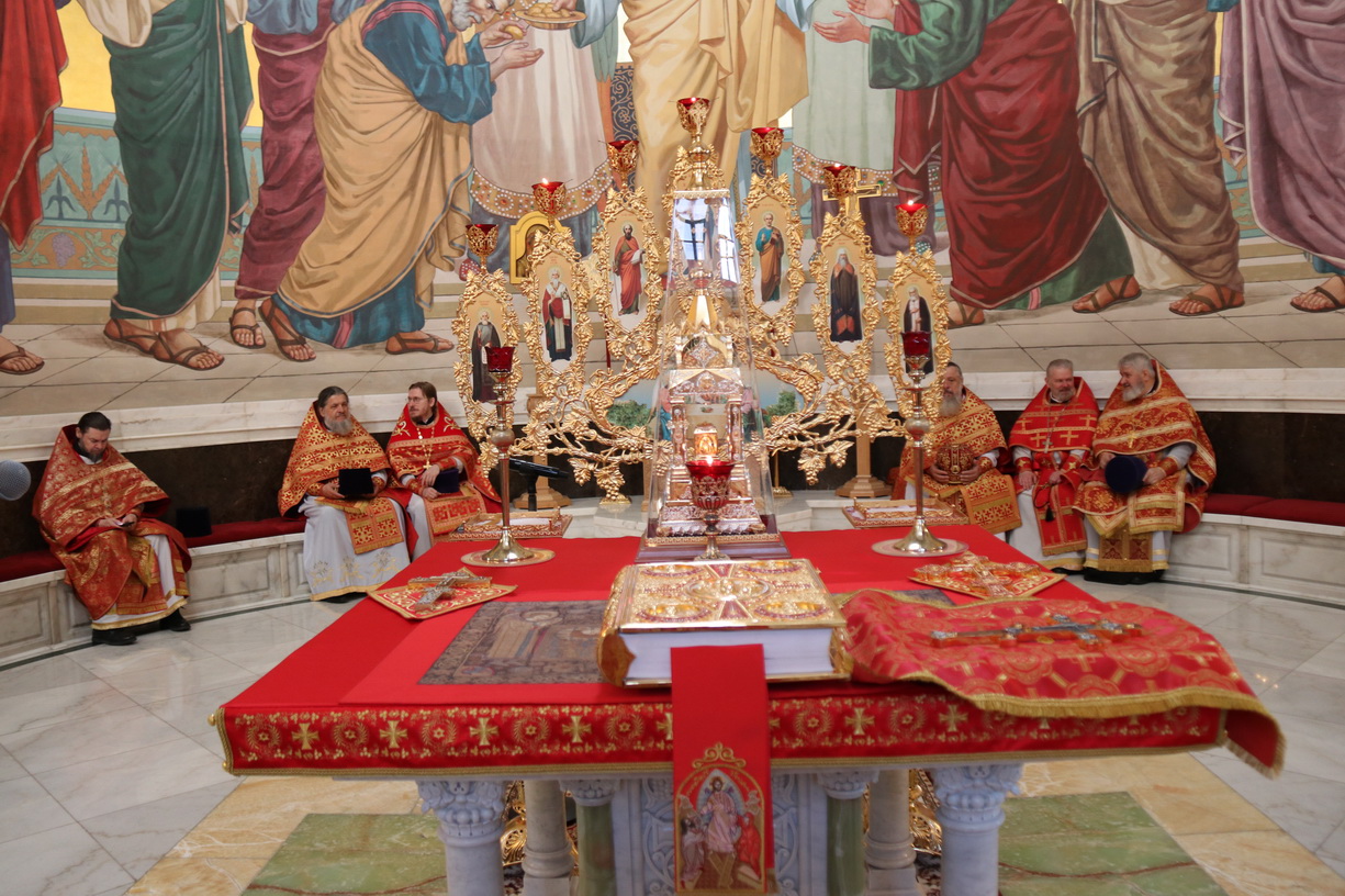 В субботу Светлой седмицы архипастыри Приморской митрополии совершили Литургию в Спасо-Преображенском соборе.
