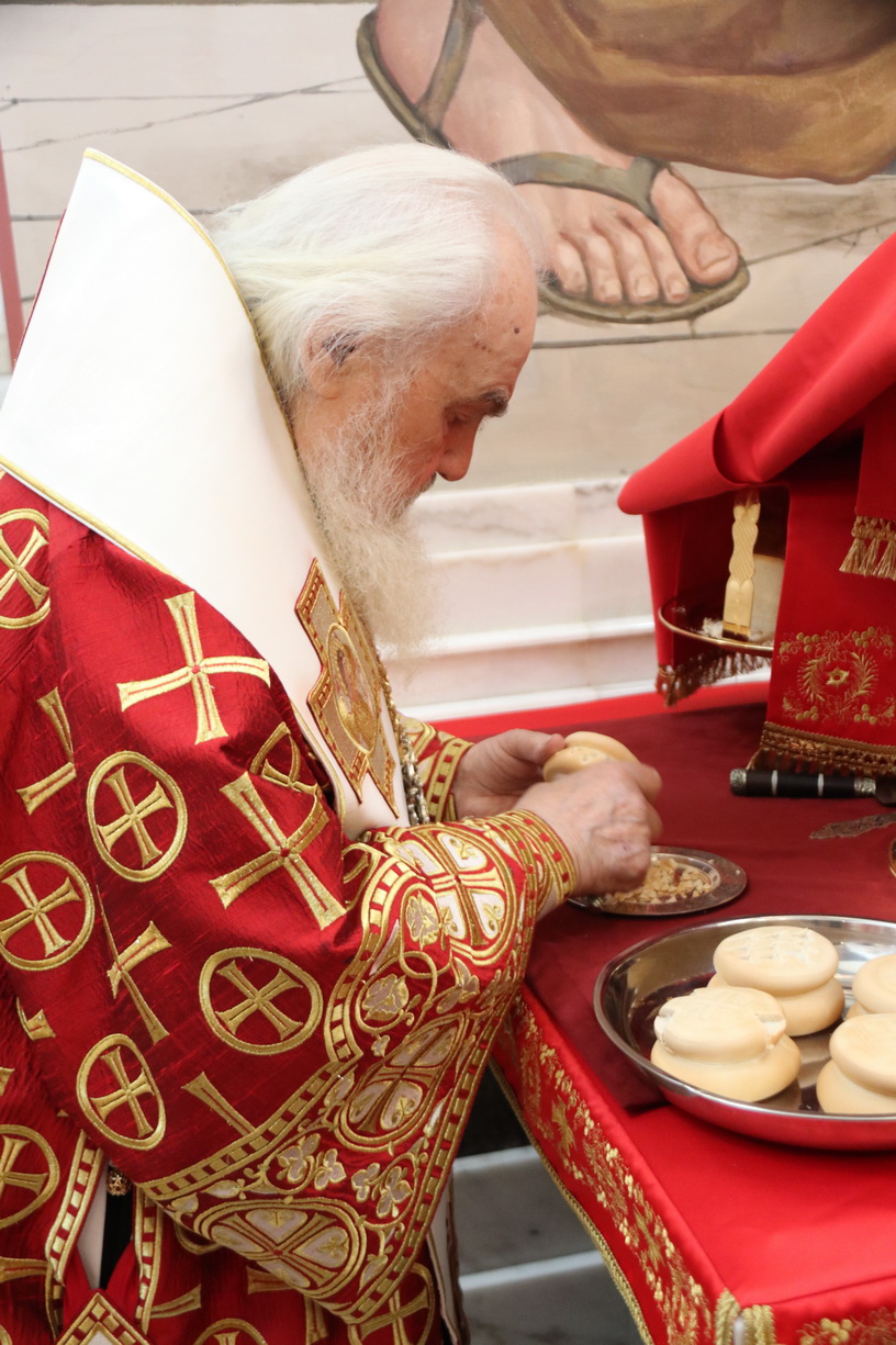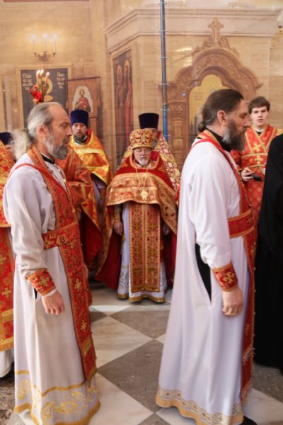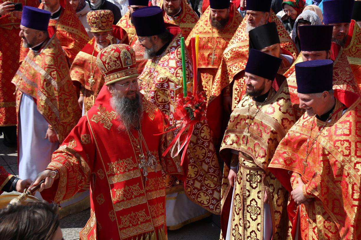 После того, как верующие причастились Святых Христовых Тайн, архиереи с духовенством и прихожанами совершили крестный ход вокруг храма, славя Воскресение Христово. Во время крестного хода было прочитано Воскресное Евангелие, все участники молитвенного шествия были окроплены святой водой.