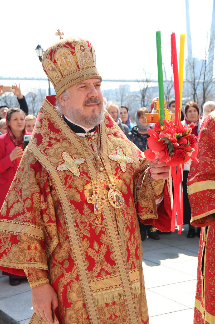 18 апреля, в субботу Светлой седмицы, в Спасо-Преображенском соборе г. Владивостока состоялась соборная Божественная литургия. Богослужение возглавили митрополит Владивостокский и Приморский Павел, митрополит Вениамин (Пушкарь), епископ Находкинский и Преображенский Николай, епископ Арсеньевский и Дальнегорский Гурий.