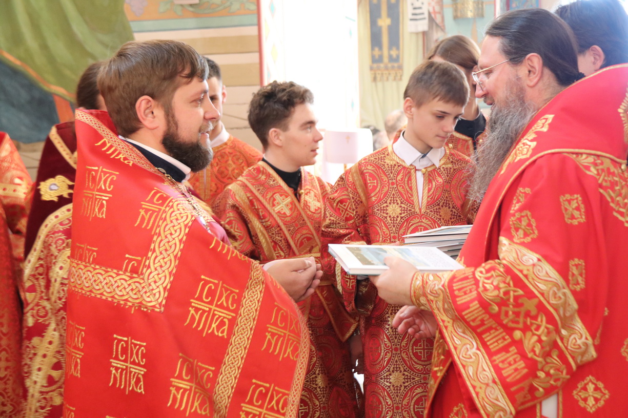 Архипастырям сослужили: протоиерей Игорь Талько, протоиерей Владимир Капитанюк, секретарь Владивостокской епархии иерей Илия Талько, благочинный Никольского благочиния иерей Михаил Тутаев, ключарь собора иерей Максим Точуков, протоиерей Ростислав Мороз, протоиерей Александр Талько, благочинный Артемовского благочиния протоиерей Сергий Бирюк, протоиерей Максим Романенко, игумен Антоний (Каменчук), протоиерей Анатолий Колесников, благочинный Уссурийского сельского благочиния протоиерей Сергий Якутов и другие клирики Владивостокской епархии.