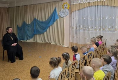 Иерей Виталий Шаркеев рассказал дошкольникам о Пасхе.