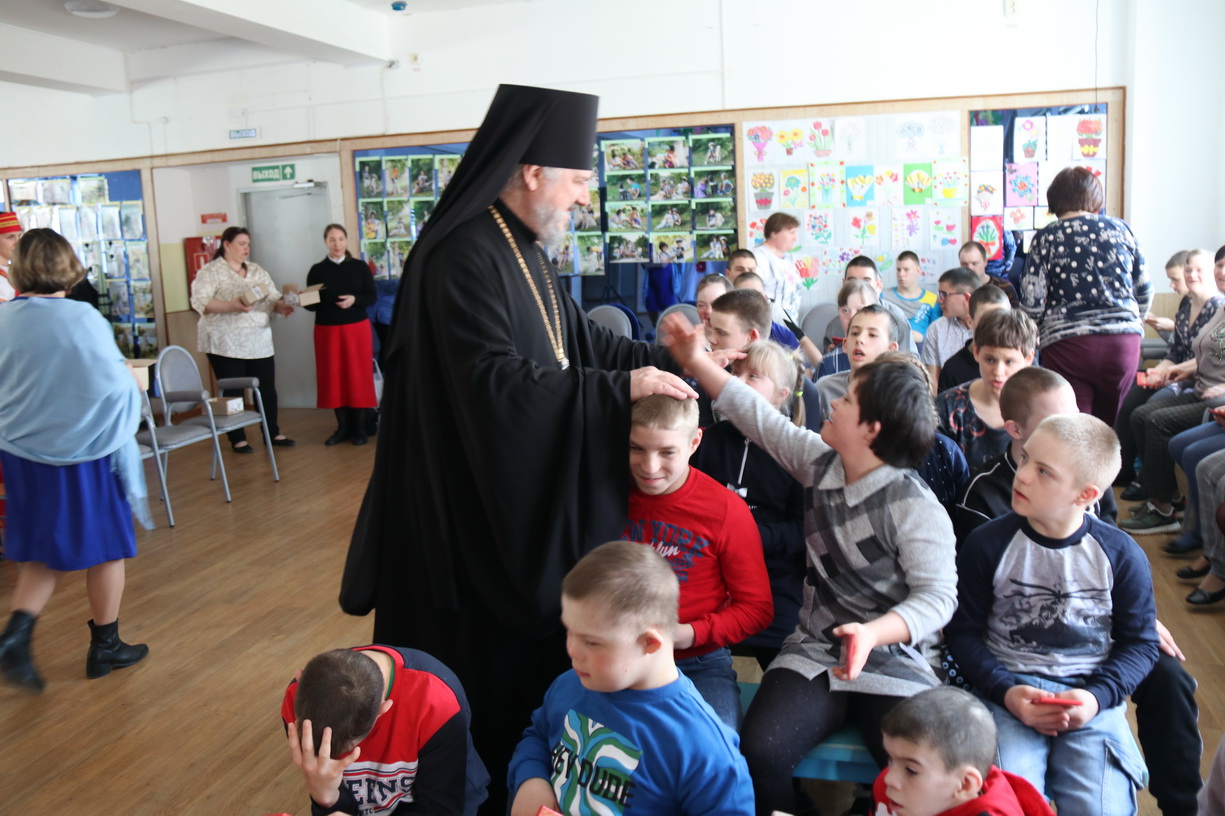 Владыка Николай поздравил с Пасхой Христовой воспитанников Дома социального обслуживания детей-инвалидов «Солнышко» с. Екатериновка.