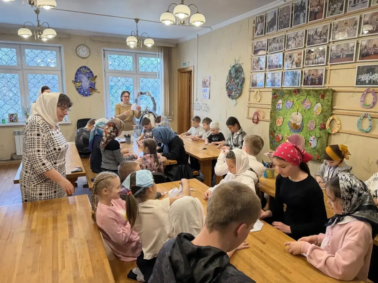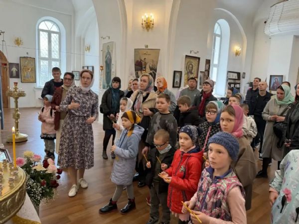 Гостей встретил настоятель храма протоиерей Сергий Бирюк вместе с педагогами воскресной школы. Для детей и их родителей была организована интересная экскурсия, в ходе которой они узнали о главных православных праздниках, правилах поведения в храме и услышали светлый колокольный звон. Юные посетители с интересом осмотрели классы воскресной школы, а также приняли участие в мастер-классе «Голубь — символ Святого Духа, чистоты и милости», сделав птичек из бумаги своими руками.