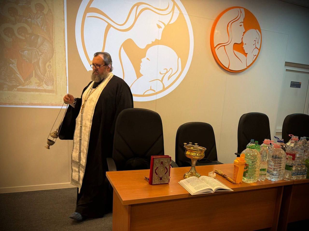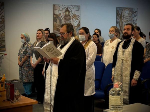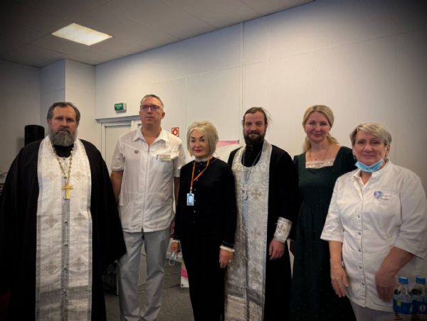 Отец Алексий совершил водосвятный молебен. После богослужения гости поздравили коллектив центра и лично главного врача Татьяну Курлееву с праздником Крещения Господня, пожелав благополучия и Божией помощи в их важном труде. Татьяна Юрьевна поблагодарила священнослужителей и Викторию Дорохину за визит и поддержку. Освящённую воду доставили всем пациентам.