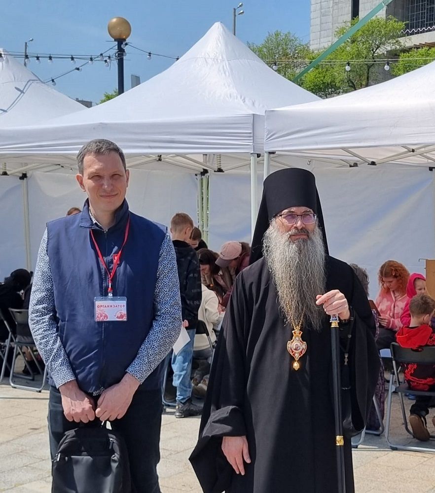 24 мая 2025 г. в мультимедийном историческом парке «Россия – моя история» (Приморье) торжественно открылся фестиваль, посвященный памяти святых равноапостольных Кирилла и Мефодия. Это мероприятие приветствовал своим словом викарий Владивостокской епархии, директор Центра епископ Уссурийский Иннокентий. Гостями программы стали группа студентов Центра и трио «Успение» храма Успения Божией Матери г. Владивостока (регент Г. Андриенко).