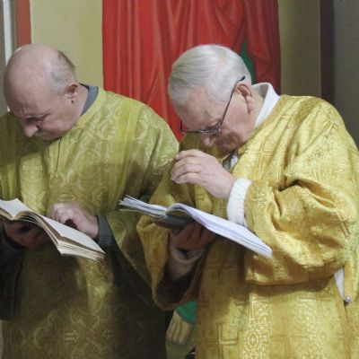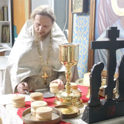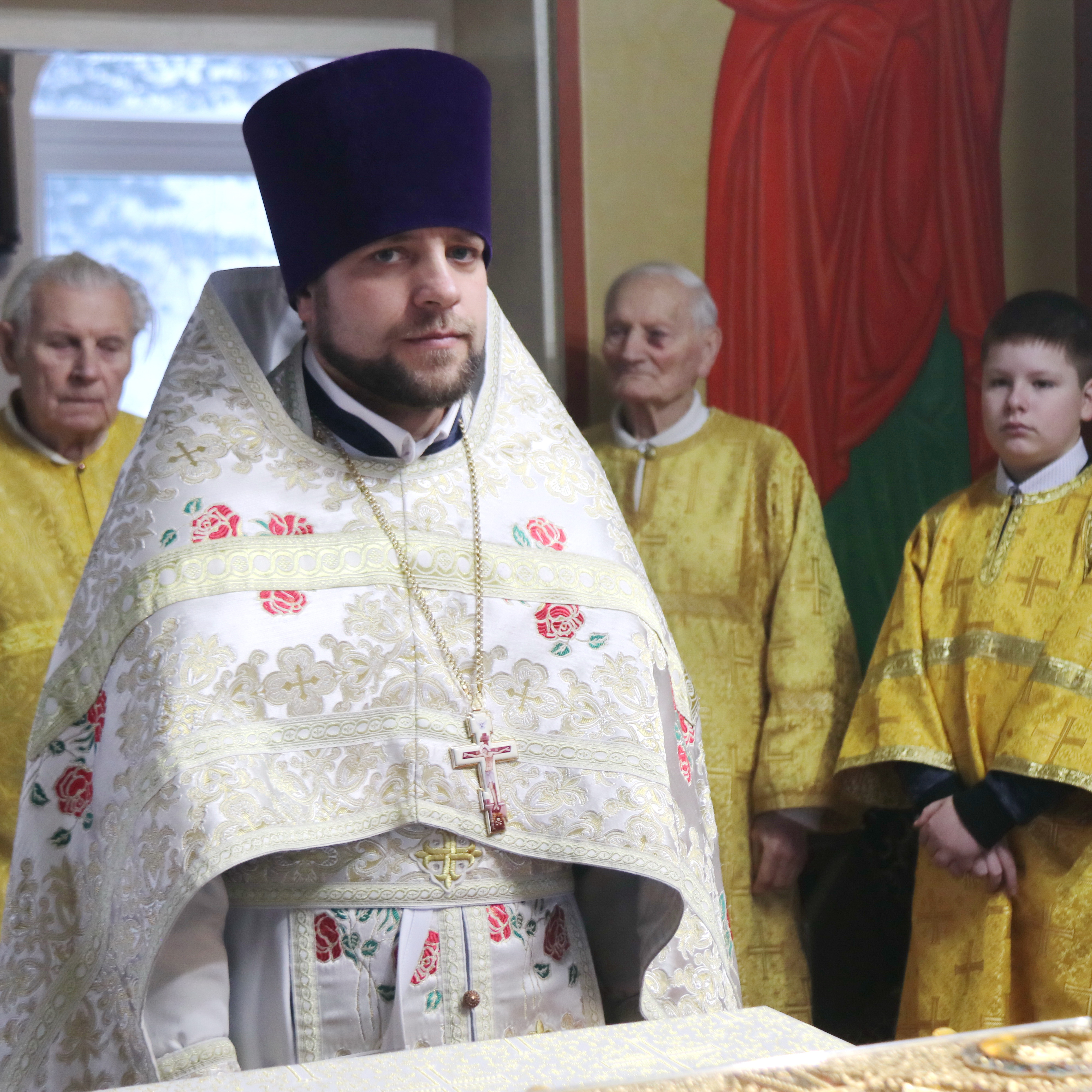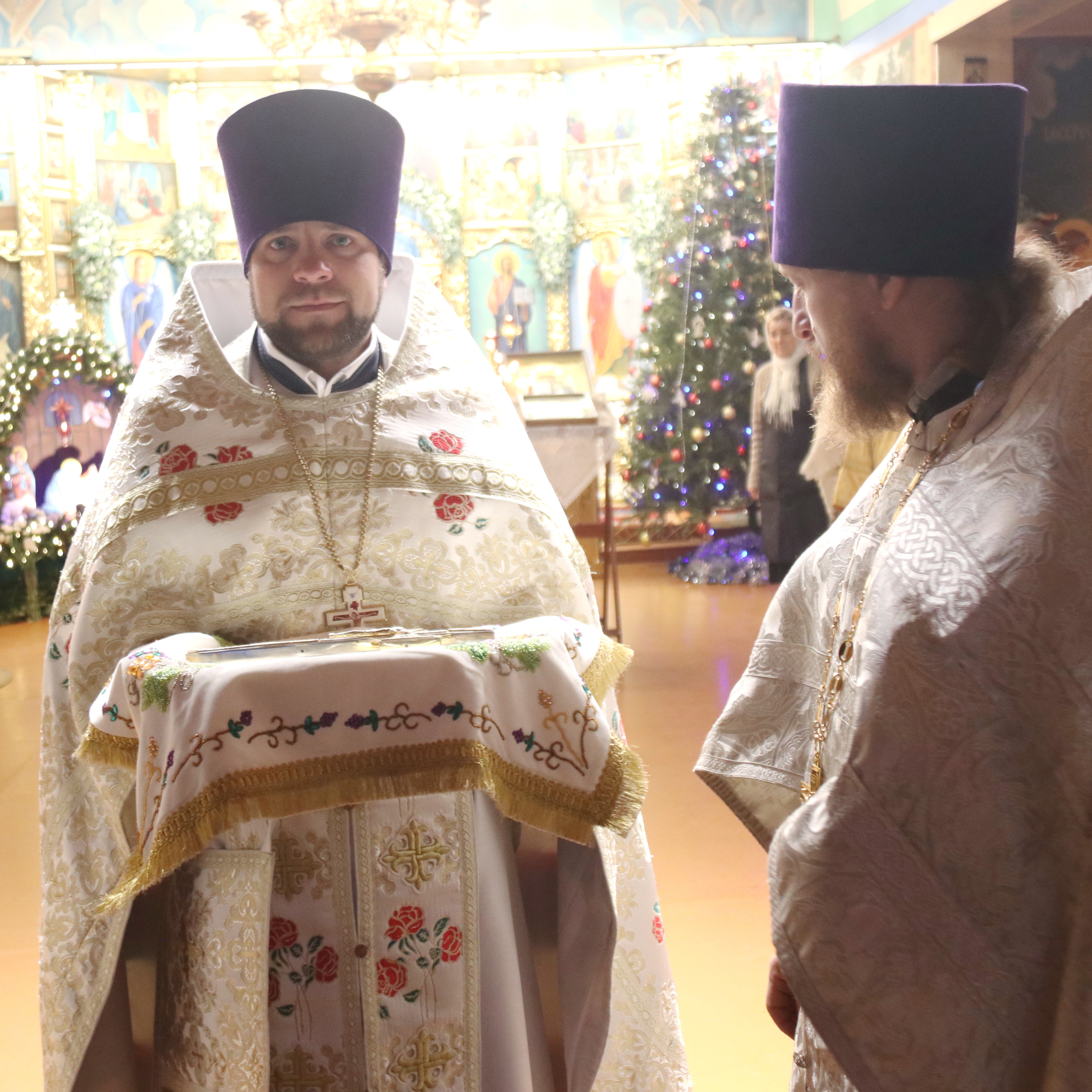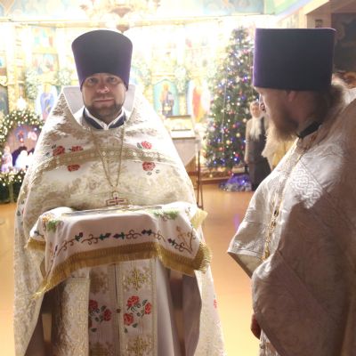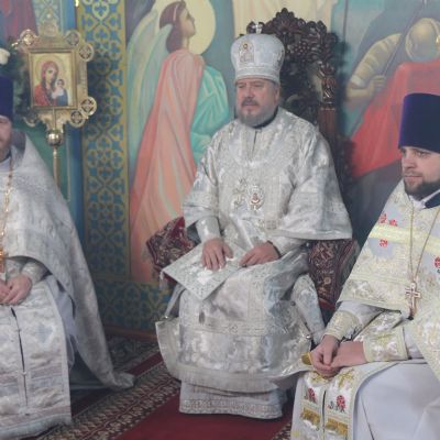 Его Преосвященству сослужили; иерей Андрей Калнин, благочиный Казанскгого Кафедрального собора и иерей Иоанн Капитанюк, настоятель Свято-Рождественского храма г. Находки.