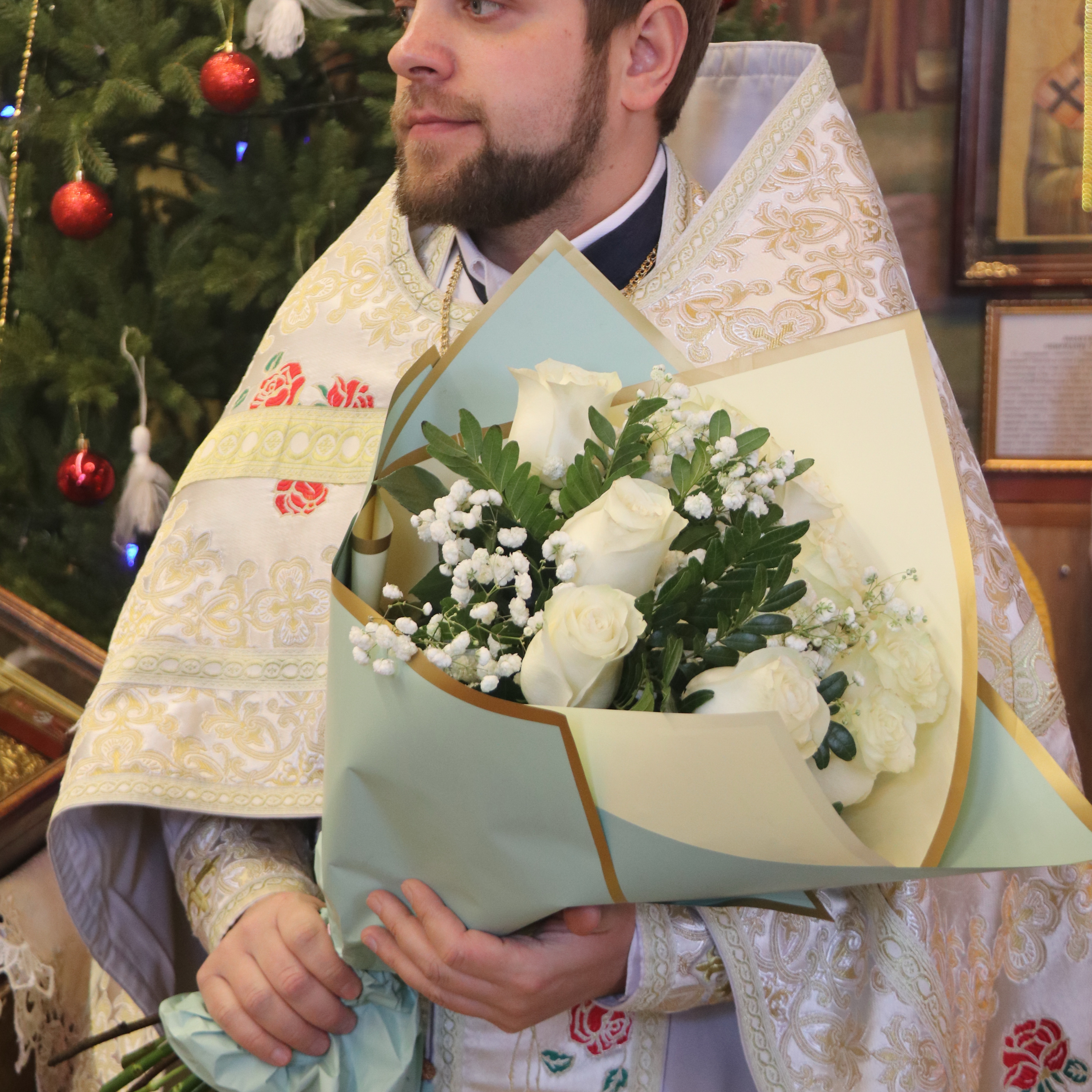 В ответном слове иерей Иоанн Капитанюк поблагодарил епископа Николая за архипастырский визит и преподнес Владыке букет цветов.