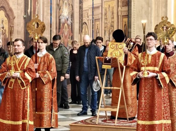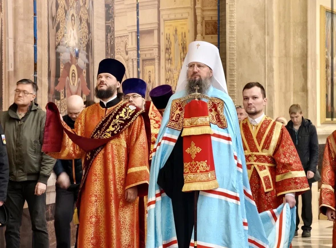 Архипастырю сослужили: ключарь собора иерей Максим Точуков, иерей Димитрий Винокуров, иерей Димитрий Брызгалов, протодиакон Адриан Чунчук и диакон Василий Талько.