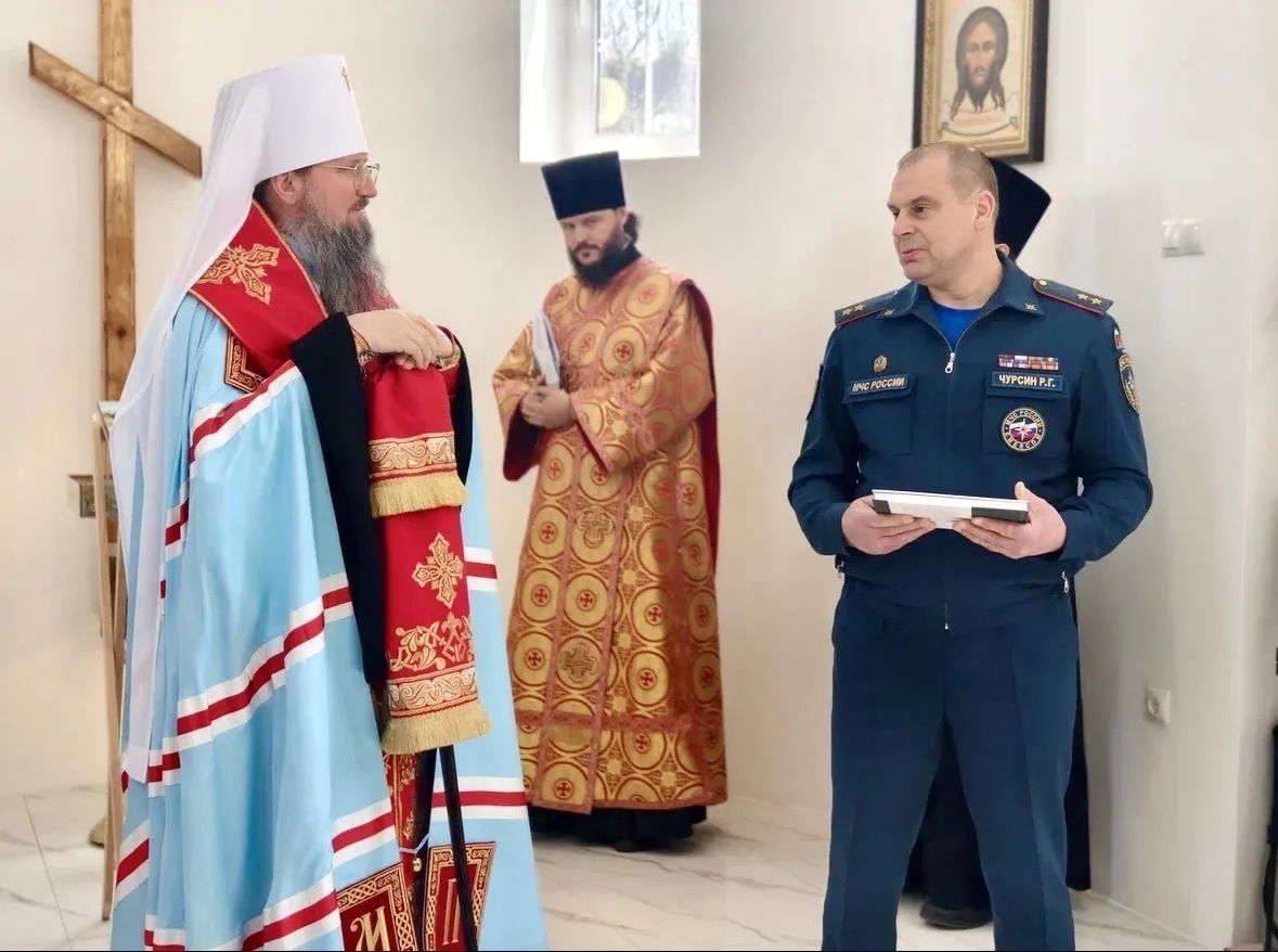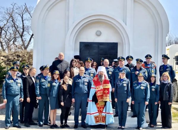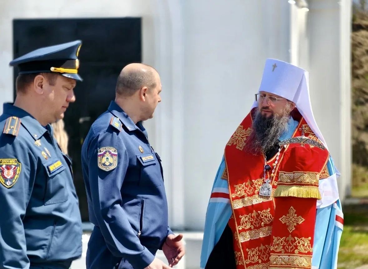 Затем владыка Павел совершил заупокойную литию по сотрудникам МЧС, положившим души свои за други своя при исполнении служебного долга, моля Господа о упокоении их душ.
