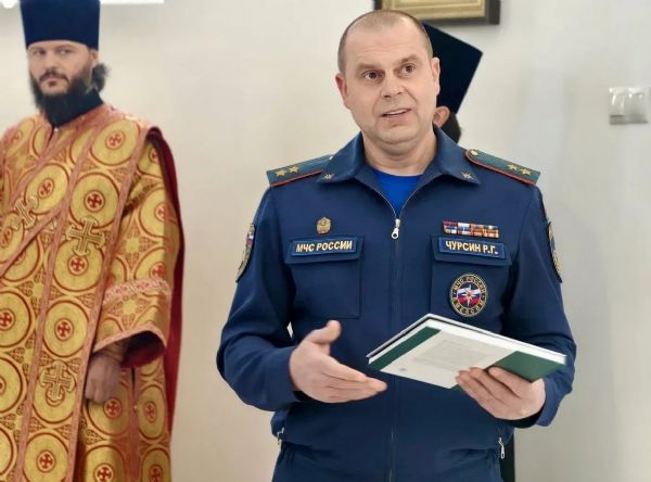 За богослужением молился генерал-лейтенант Роман Геннадьевич Чурсин, начальник Главного управления МЧС России по Приморскому краю.