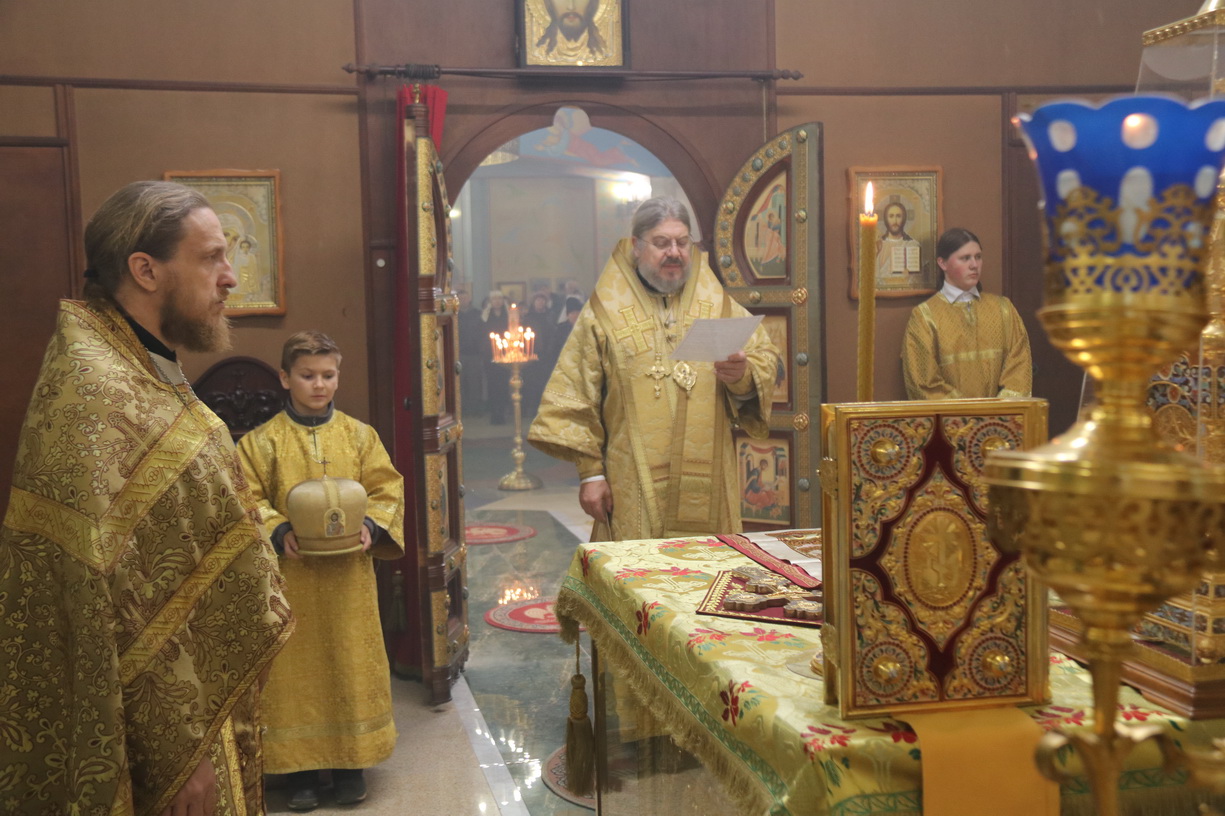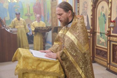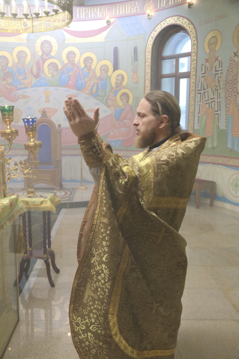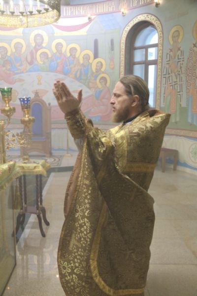 Его Преосвященству сослужили: иерей Андрей Калнин; иерей Виталий Шаркеев; иеромонах Ермоген (Крещенко) и иерей Илия Гречишников.