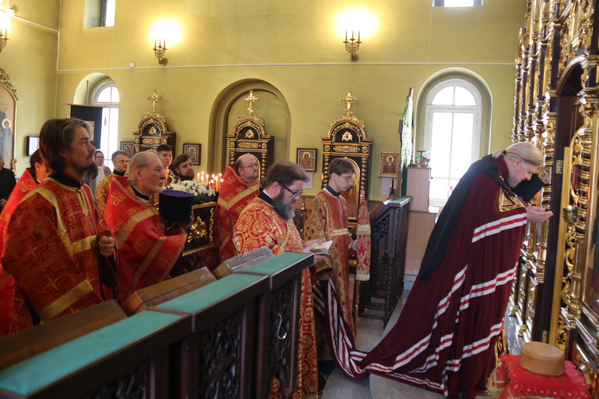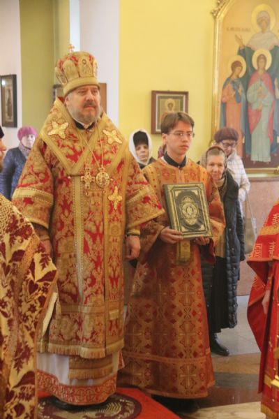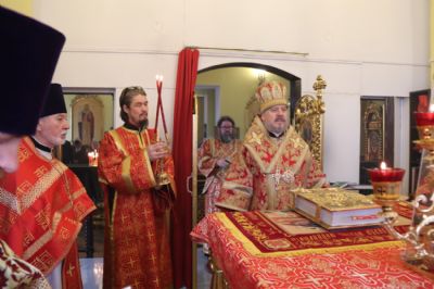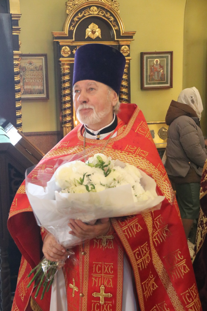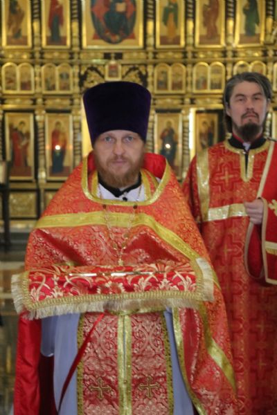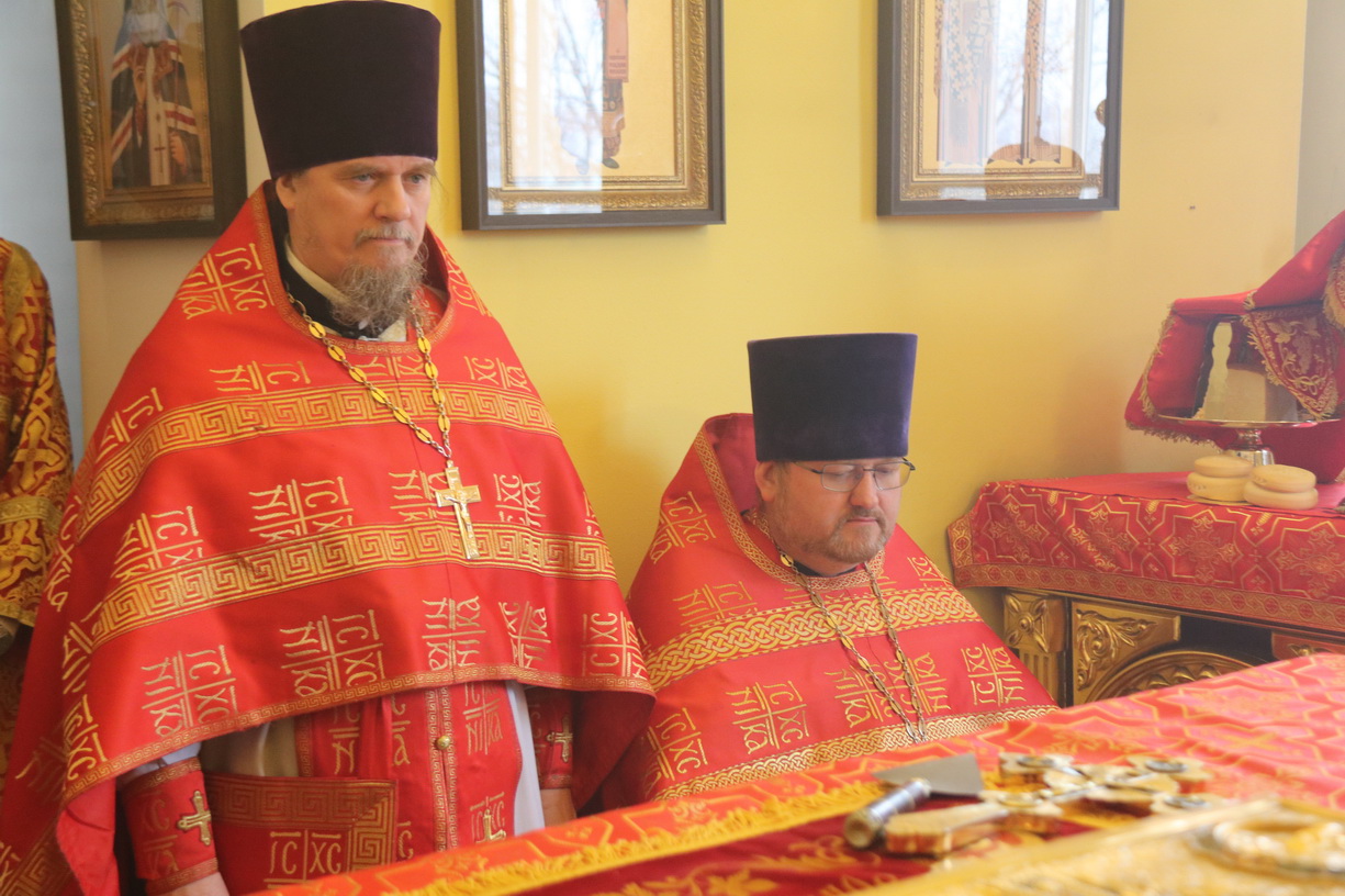 Его Преосвященству сослужили: секретарь Находкинской епархии, протоиерей Александр Коваленко, настоятель храма вмч. Георгия Победоносца п. Дунай; иерей Роман Капитанюк, настоятель храма св. апостола Андрея Первозванного ЗАТО г. Фокино; иерей Иоанн Капитанюк, настоятель храма Рождества Христова г. Находки, иерей Алексий Пикулин, настоятель храма Иверской иконы Божией Матери пгт. Смолчниново; иерей Андрей Калнин, ключарь Казанского Кафедрального собора г. Находки.