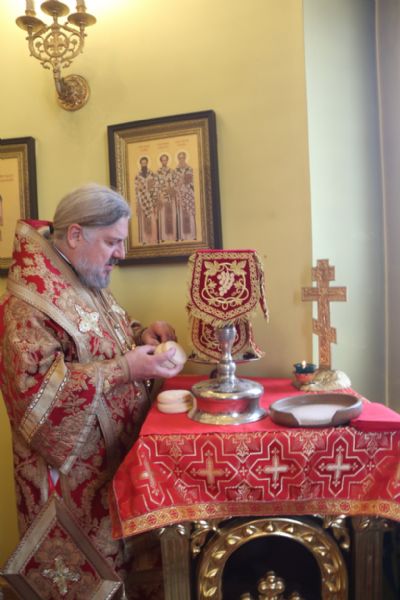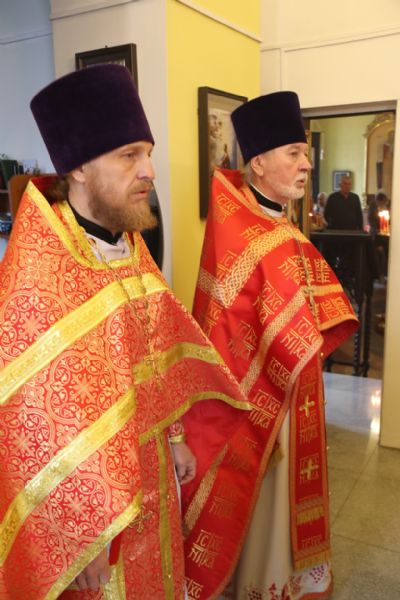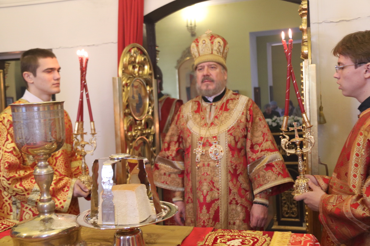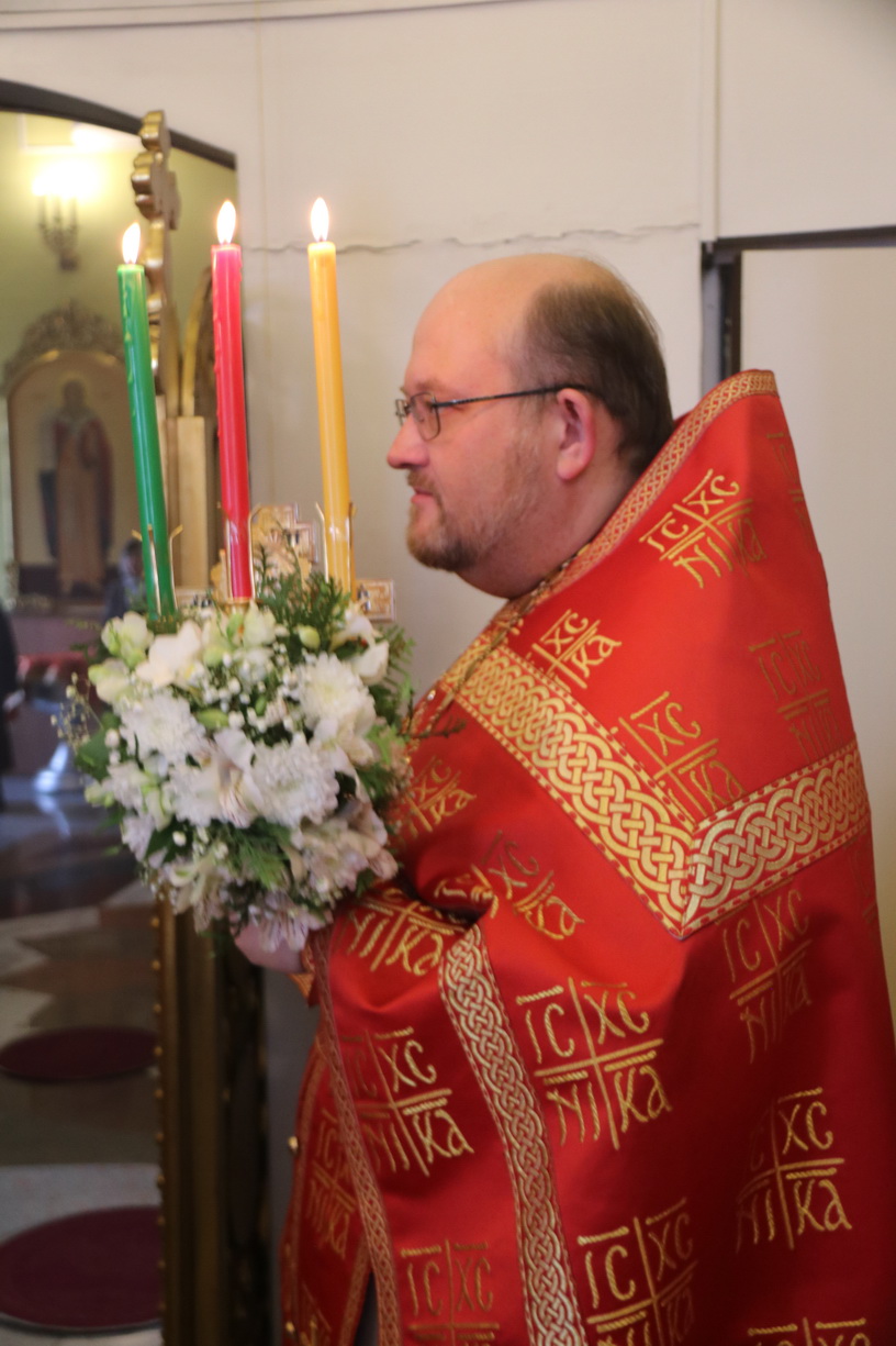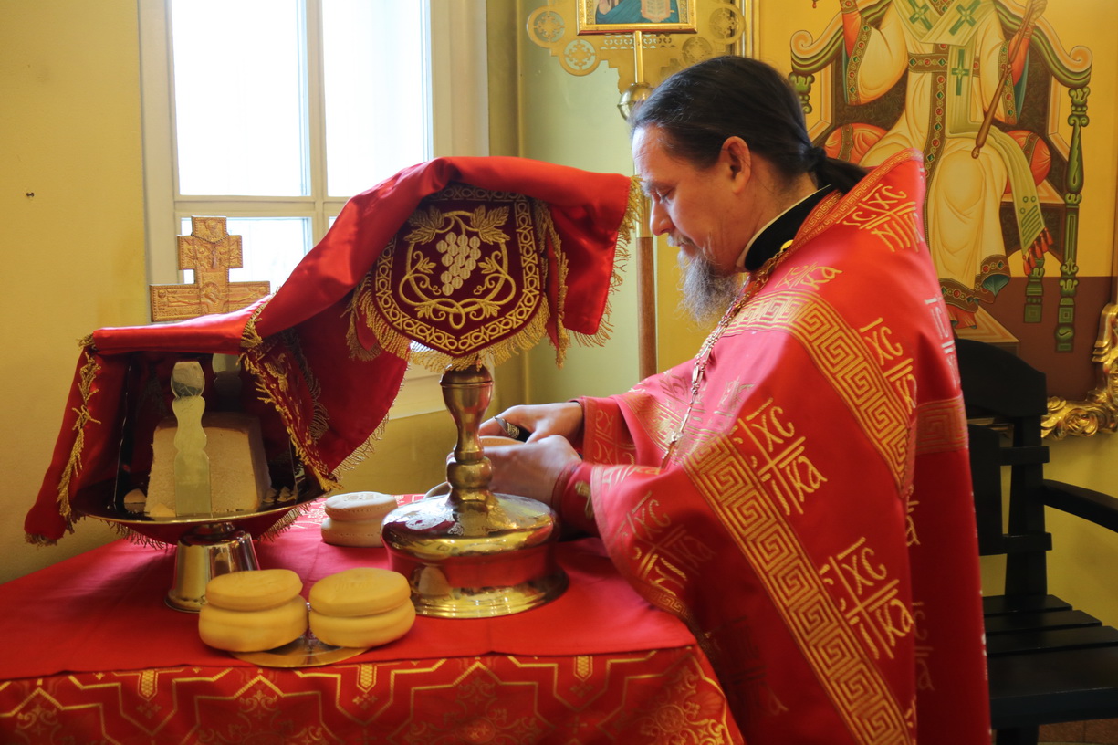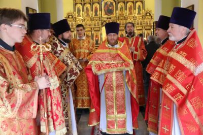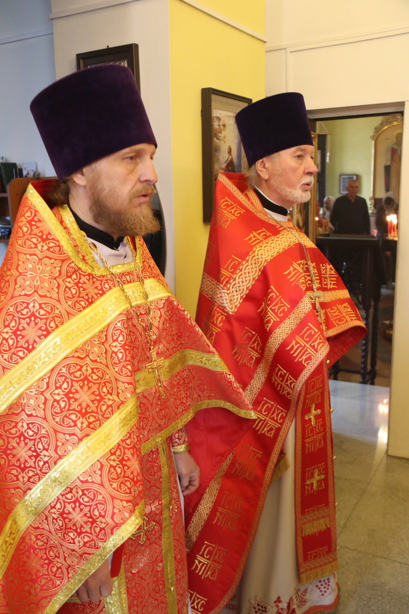 Его Преосвященству сослужили: секретарь Находкинской епархии, протоиерей Александр Коваленко, настоятель храма вмч. Георгия Победоносца п. Дунай; иерей Роман Капитанюк, настоятель храма св. апостола Андрея Первозванного ЗАТО г. Фокино; иерей Иоанн Капитанюк, настоятель храма Рождества Христова г. Находки, иерей Алексий Пикулин, настоятель храма Иверской иконы Божией Матери пгт. Смолчниново; иерей Андрей Калнин, ключарь Казанского Кафедрального собора г. Находки.